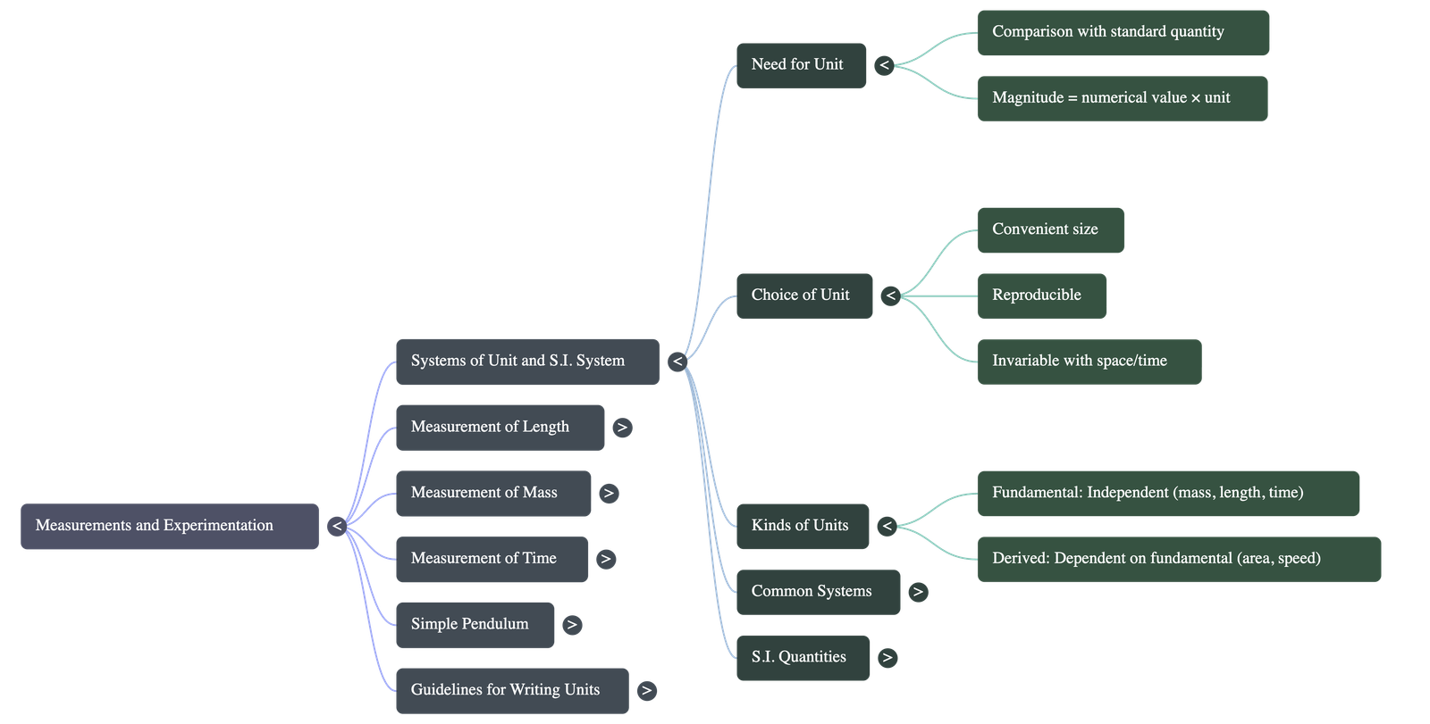 - Measurement: The process of comparing a given physical quantity with a known standard quantity of the same nature.