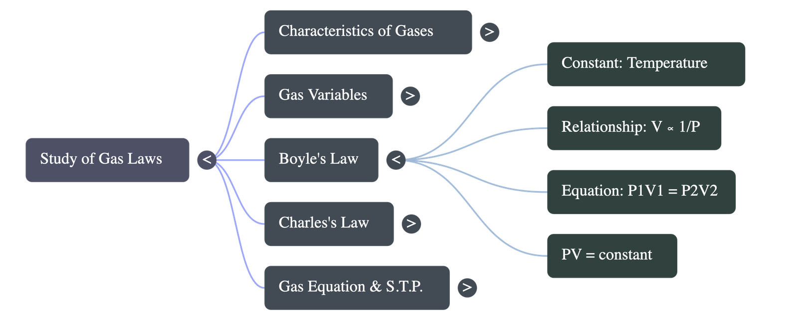 - Definition: Proposed by Robert Boyle, it states that at a constant temperature, the volume of a given mass of dry gas is inversely proportional to its pressure.