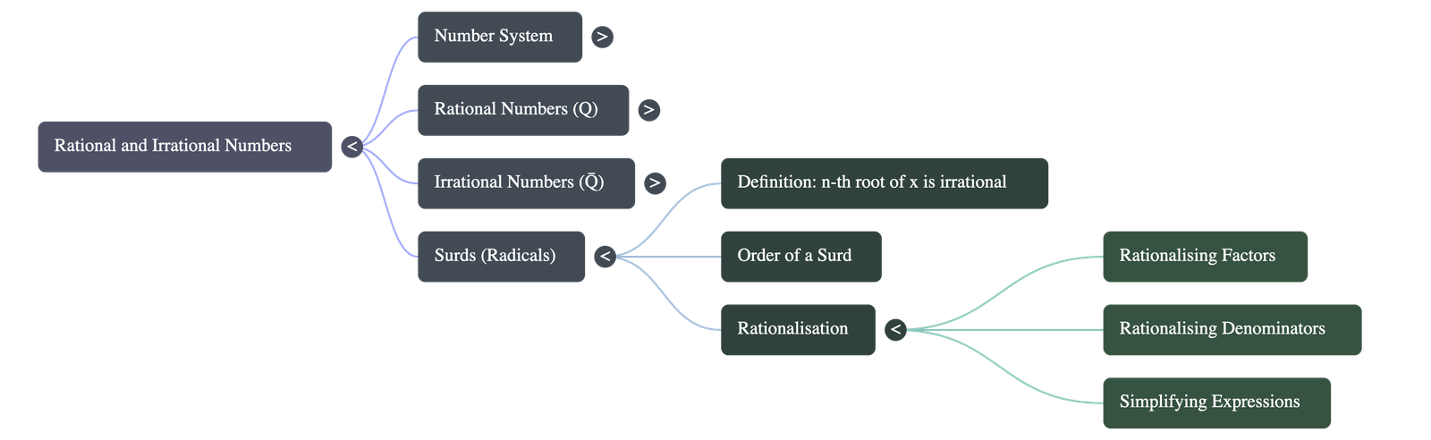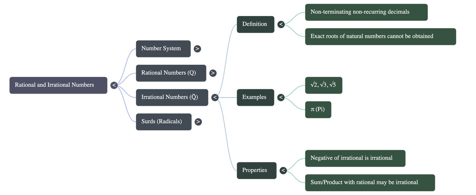 - Key Rule: Every surd is an irrational number, but every irrational number is not necessarily a surd (for example, π is irrational but not a surd).