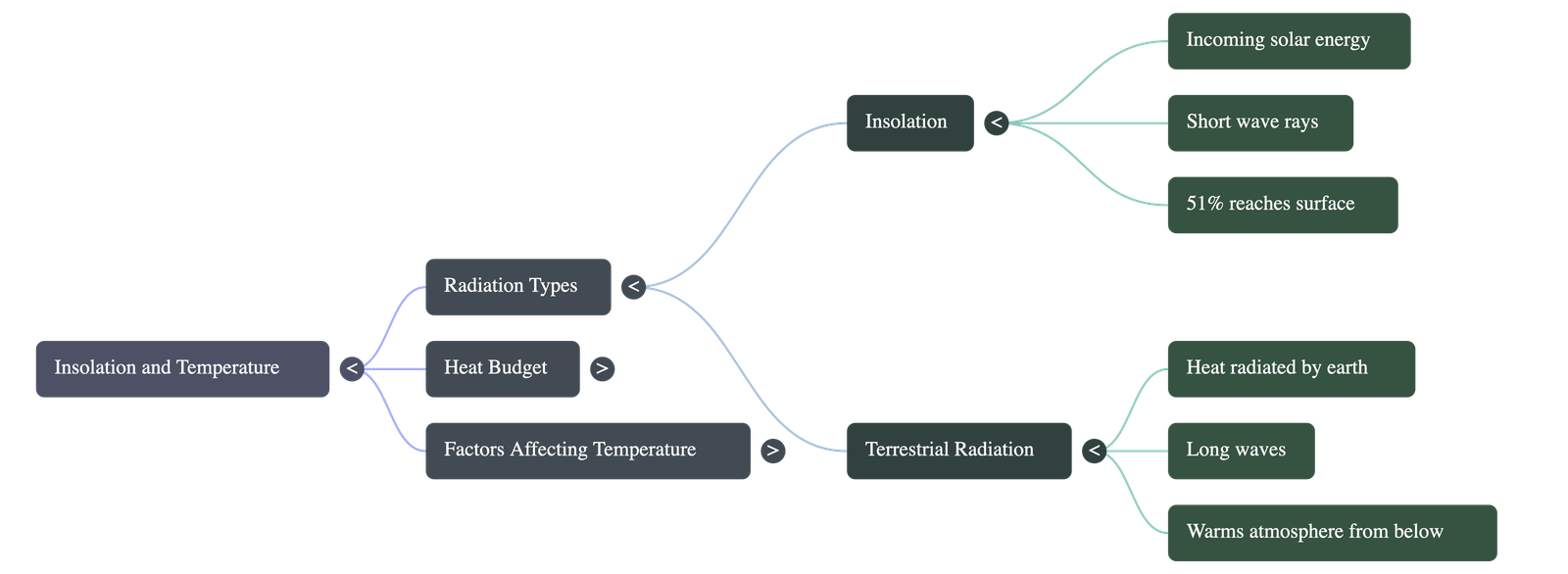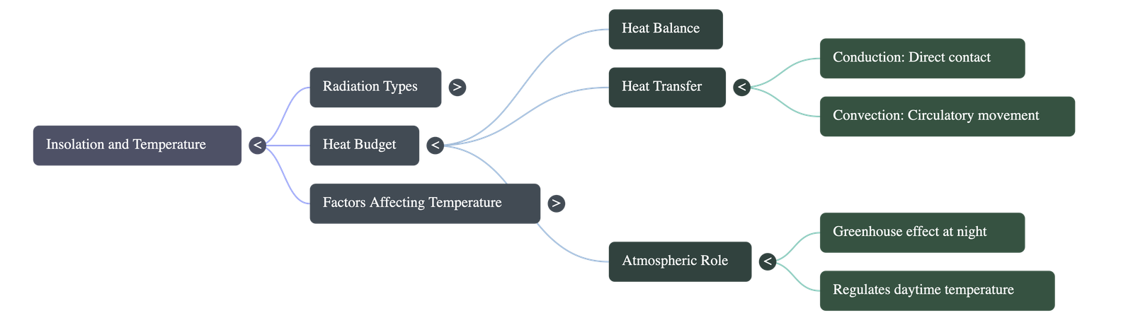 - Heat Balance: A state of equilibrium where the incoming insolation from the sun matches the outgoing terrestrial radiation from the Earth. This balance ensures the Earth's average global temperature remains stable.