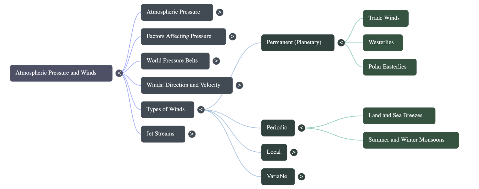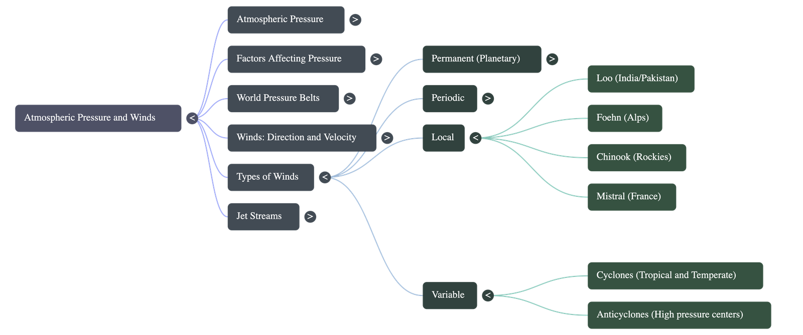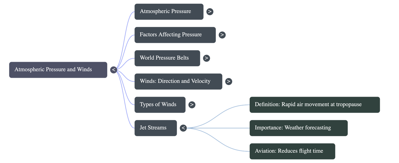 - Measurement: Pressure is measured in millibars (mb) using barometers (such as Fortin's Barometer and Aneroid Barometer). The average atmospheric pressure at sea level is 1013.25 mb.