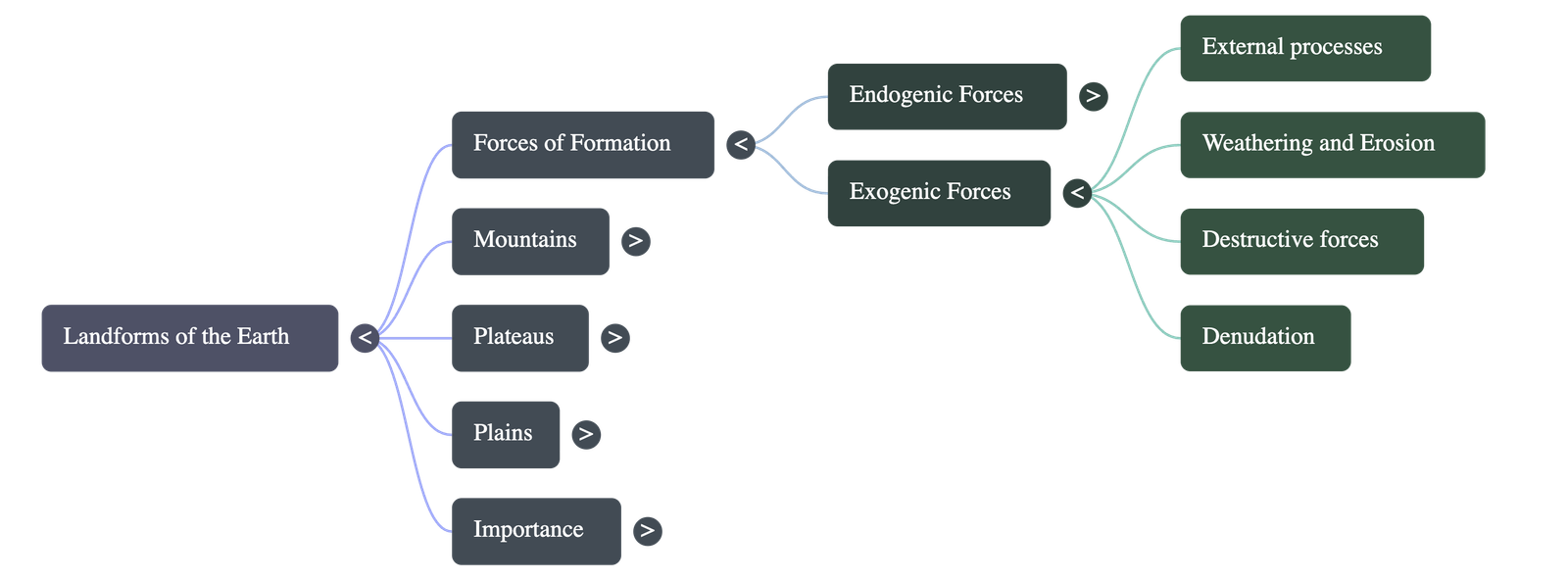 - Exogenic Forces: External forces operating on the surface. They are called "Destructive Forces" because they cause widespread weathering and erosion, creating new landforms through erosion and deposition.