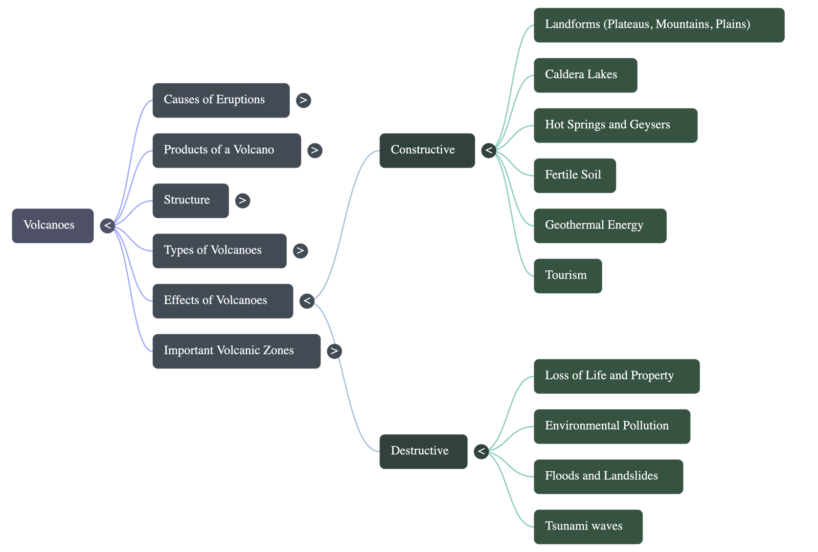 - Landform Creation: Formation of volcanic plateaus (e.g., Plateau of Peninsular India), volcanic mountains (e.g., Mt. Fuji), and extensive volcanic plains.