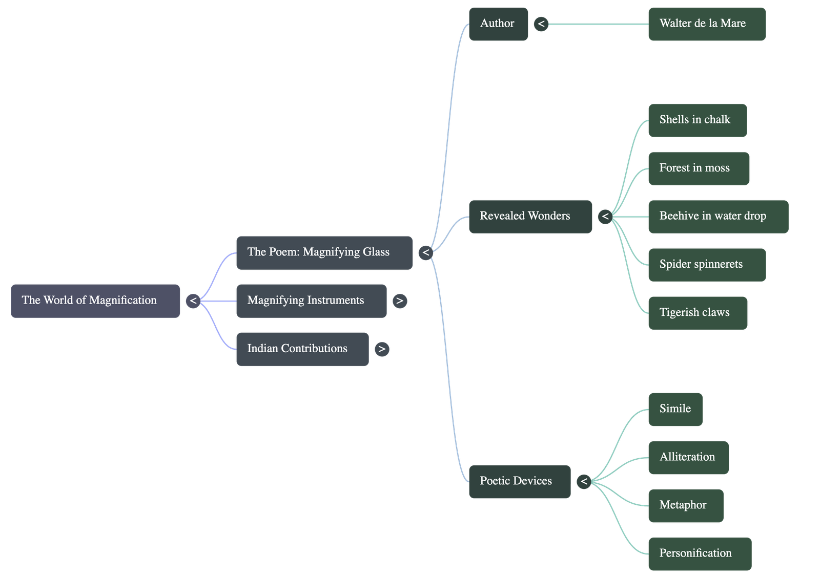 - The Magic of Magnification: The poem explores the transformative power and "magic" of close observation, showing how tiny, ordinary things become grand and complex when magnified.