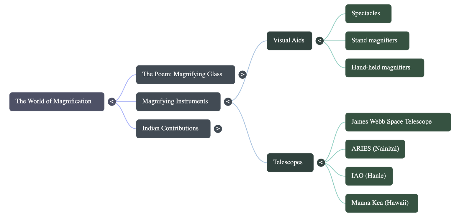 - Visual Aids: Discusses how lenses help individuals with low vision through tools like magnifying spectacles, stand magnifiers, hand-held magnifiers, and small telescopes.