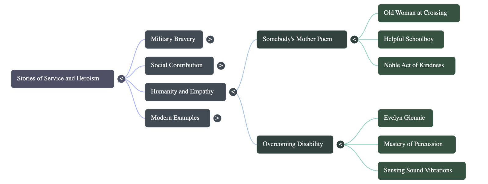 - • A Mother's Blessing: Touched by the young boy's selfless act, the old woman prays to God that night, asking for blessings upon the noble boy who is "somebody's son, and pride and joy."