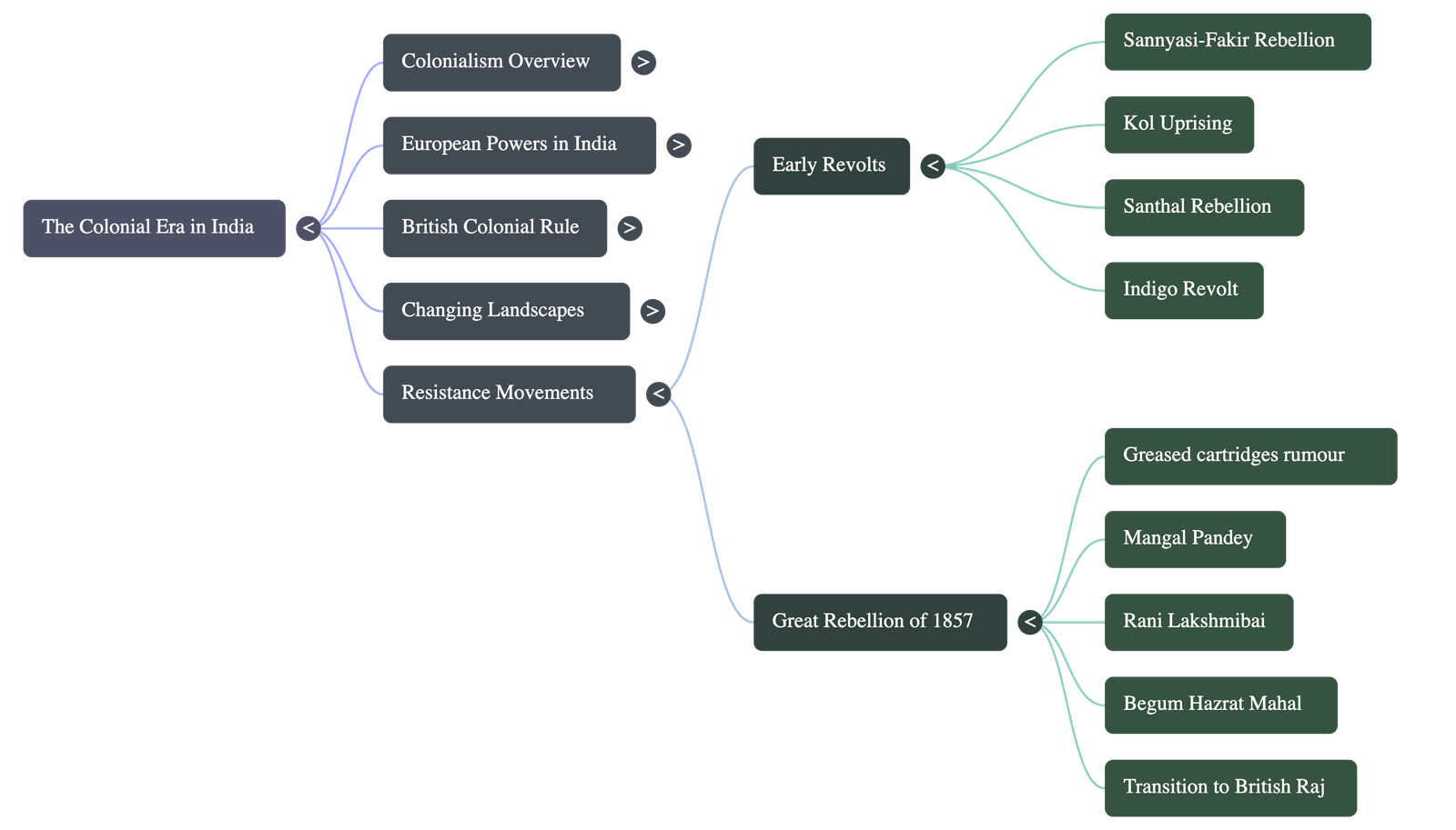 - The Great Rebellion of 1857: Triggered by the use of greased rifle cartridges offending religious sensibilities, this massive uprising united Hindu and Muslim sepoys who declared Mughal emperor Bahadur Shah Zafar their leader. Heroic figures like Rani Lakshmibai of Jhansi, Tatia Tope, and Begum Hazrat Mahal fiercely fought the British. Though brutally suppressed, it marked the end of Company rule and the beginning of the British Raj (direct rule by the Crown).