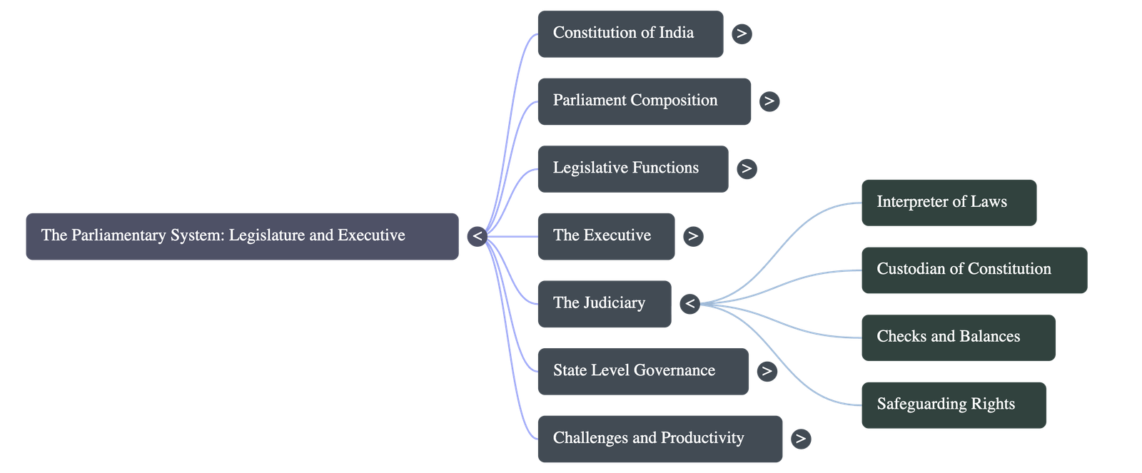- The Judiciary acts as the custodian of the Constitution, interpreting laws and resolving disputes through a system of courts.