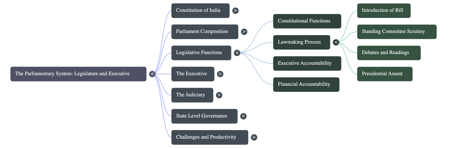- Lawmaking: The primary role of drafting, debating, and passing laws. A proposed law (bill) undergoes multiple readings, committee scrutiny, clause-by-clause discussions, and voting in both houses before receiving Presidential assent and becoming an act (e.g., the Right to Education Act).