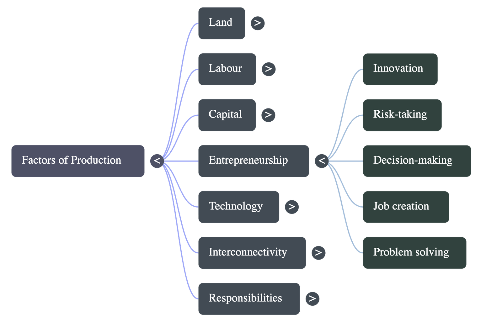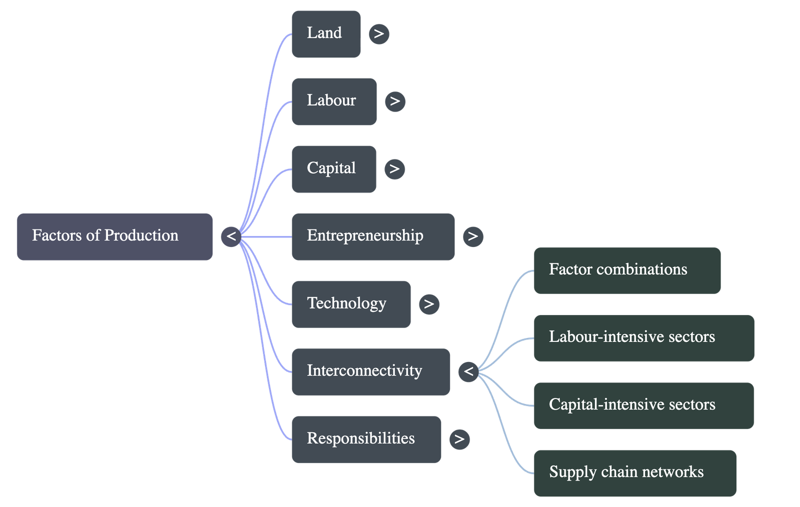 - All factors (land, labour, capital, entrepreneurship, and technology) must be combined. The proportion depends on the industry.