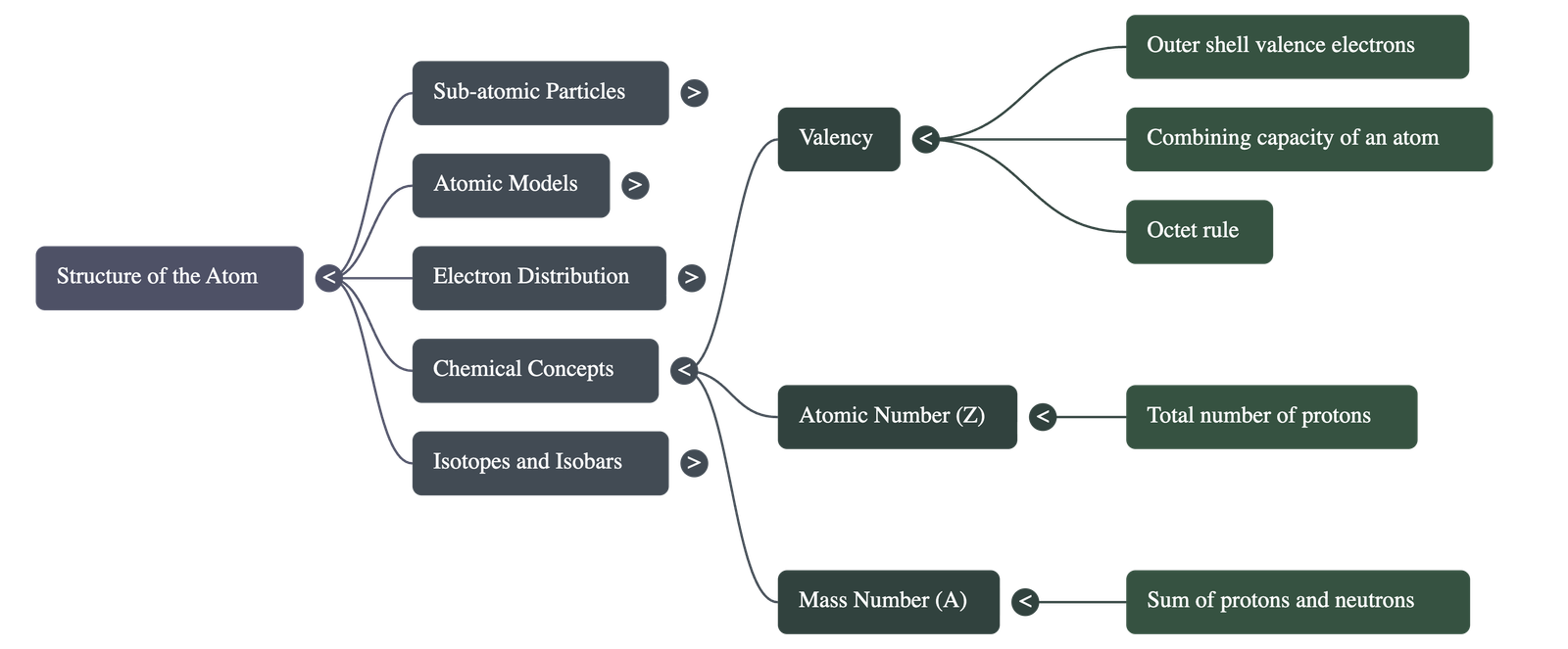- Valency: The combining capacity of an atom. It is determined by the number of valence electrons (electrons in the outermost shell).