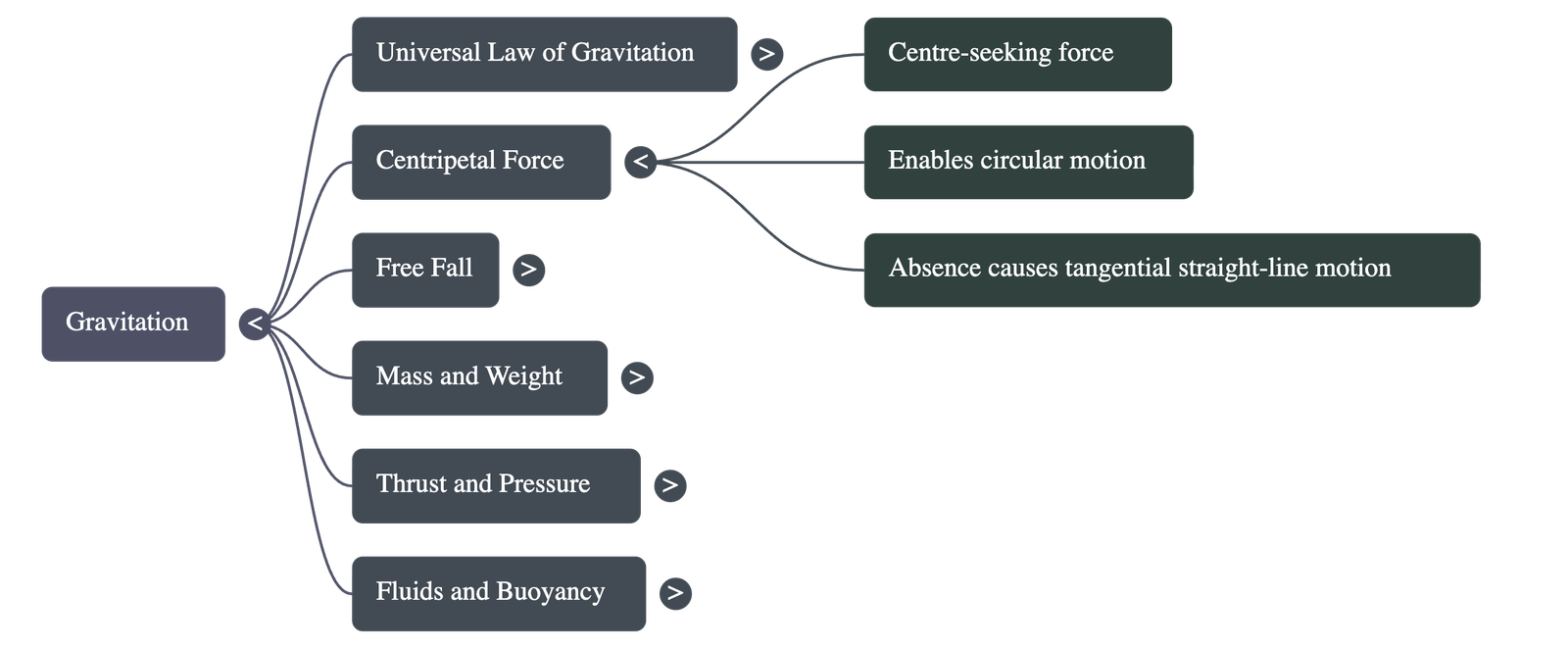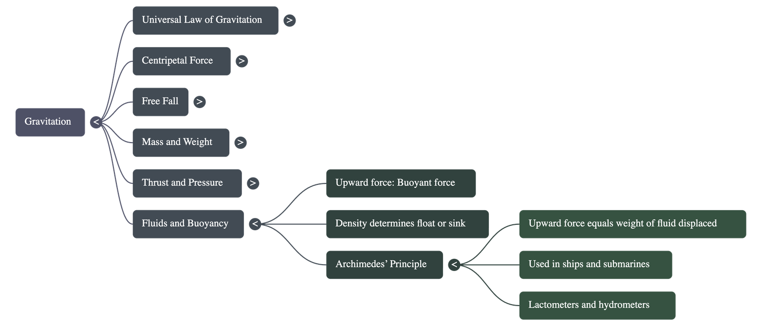 - Buoyancy (Upthrust): When an object is immersed in a fluid, the fluid exerts an upward force on it. This is called the buoyant force.