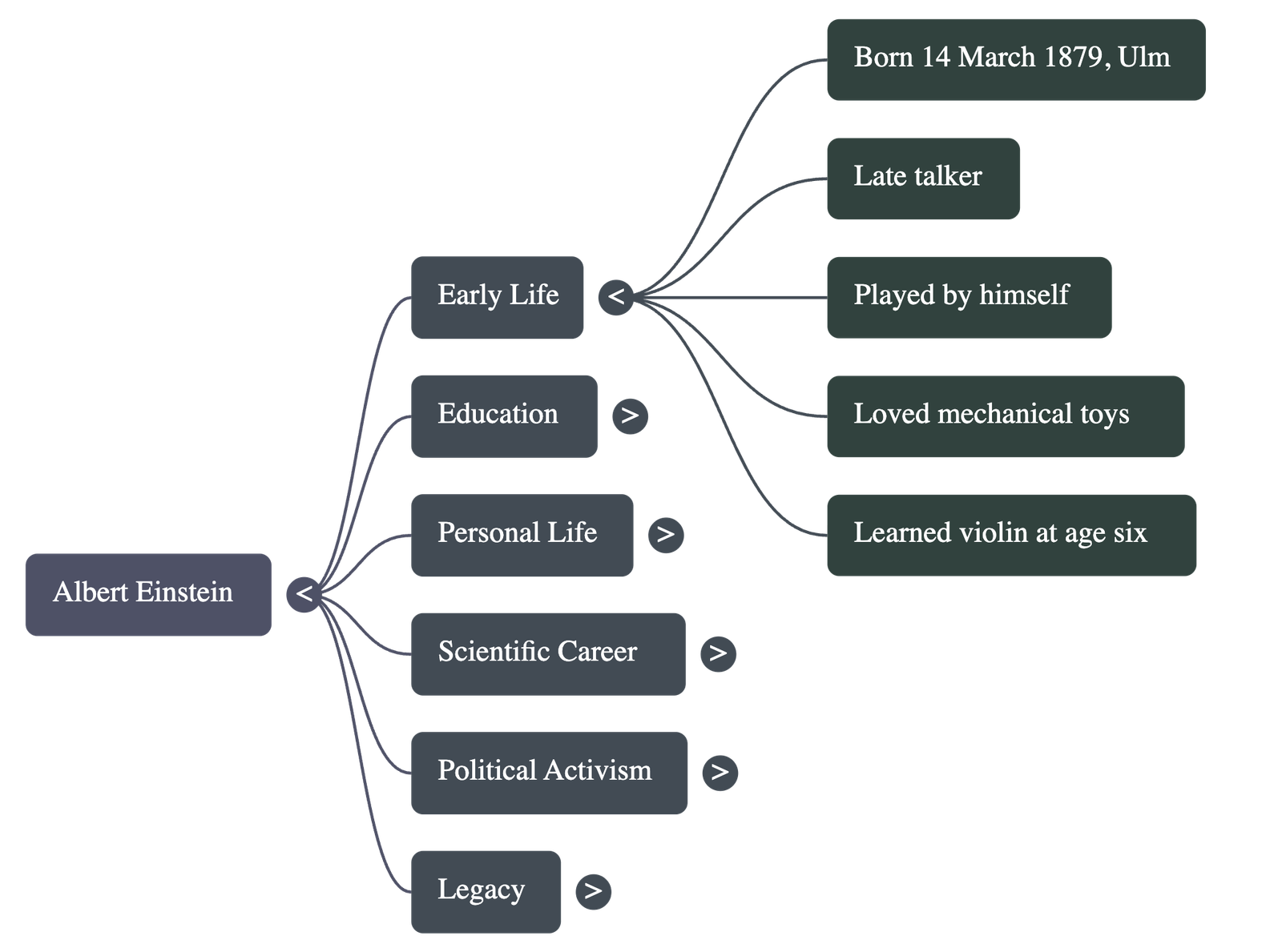 - Birth: Albert Einstein was born on March 14, 1879, in the German city of Ulm. There were no early signs of his future greatness.