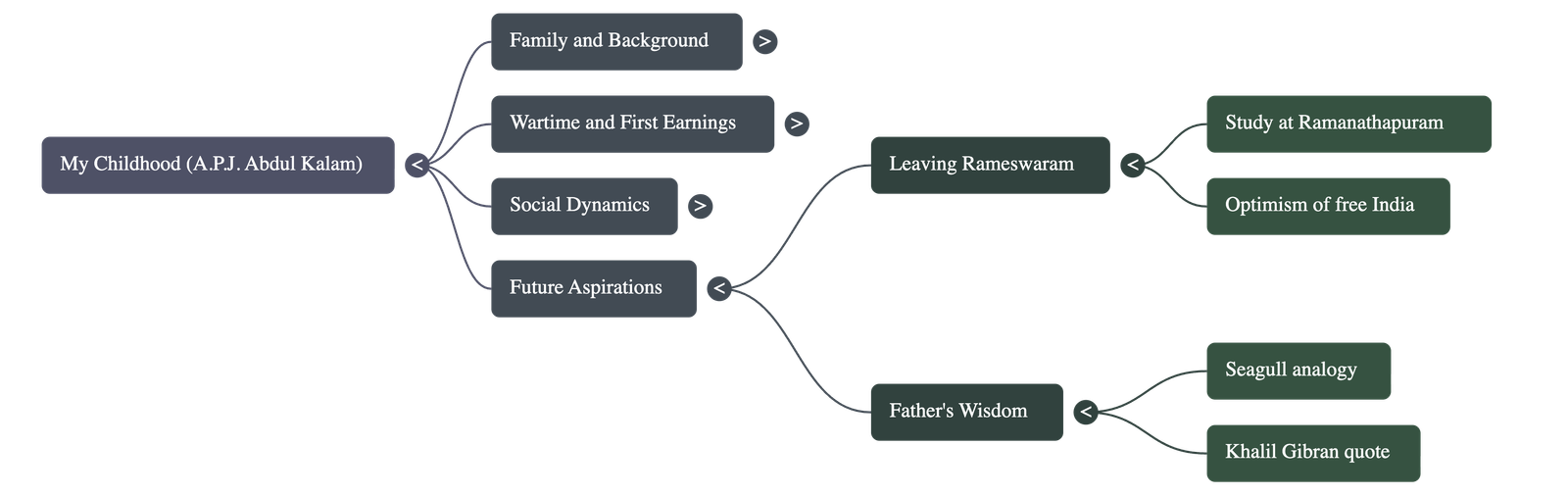 - Father’s Wisdom: His father agreed, understanding the need for growth. He compared Kalam to a seagull flying alone across the sun. Quoting Khalil Gibran to comfort Kalam’s mother, he explained that children are "sons and daughters of Life's longing for itself" and have their own thoughts and destinies.