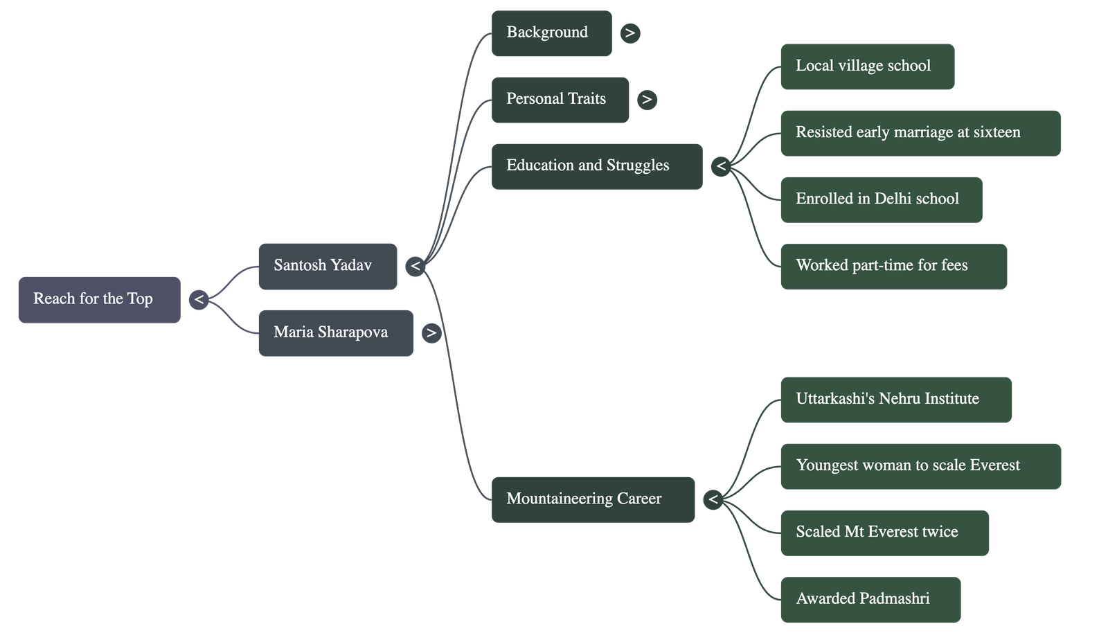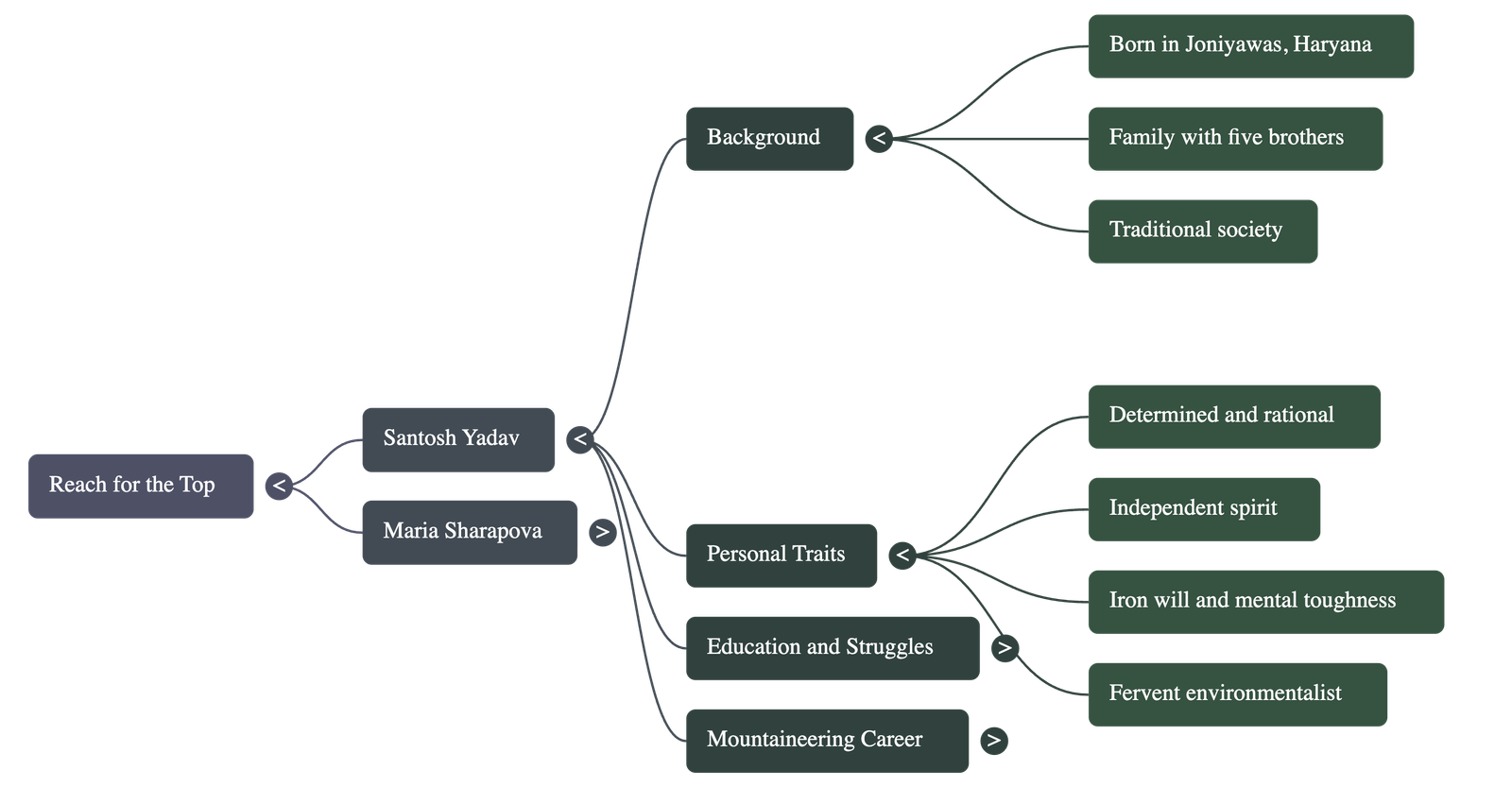 This section details the inspiring journey of Santosh Yadav, the only woman in the world to scale Mt. Everest twice.