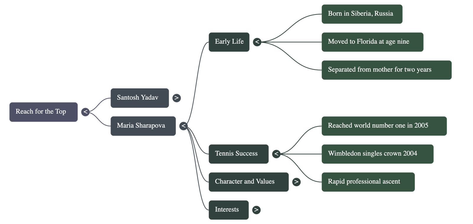 This section chronicles the rise of Russian tennis sensation Maria Sharapova to the world number one position.