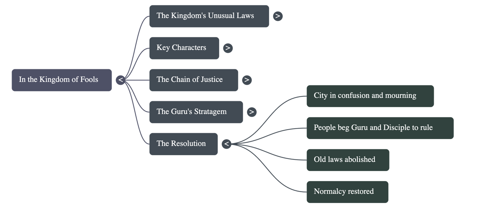 - ➤ The guru agreed on the condition that the old laws be changed. Night became night again, day became day, and prices were normalized, restoring the kingdom to sanity.