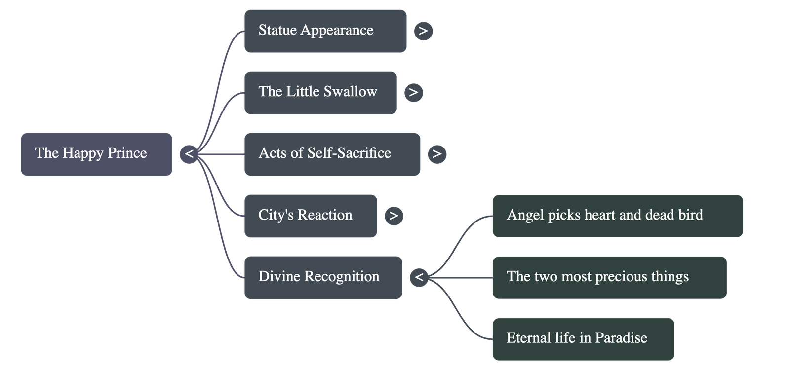 God asked one of His Angels to bring Him the two most precious things in the city. The Angel brought the leaden heart and the dead bird. God praised the choice, declaring that the little bird would sing forever in His garden of Paradise, and the Happy Prince would praise Him in His city of gold.