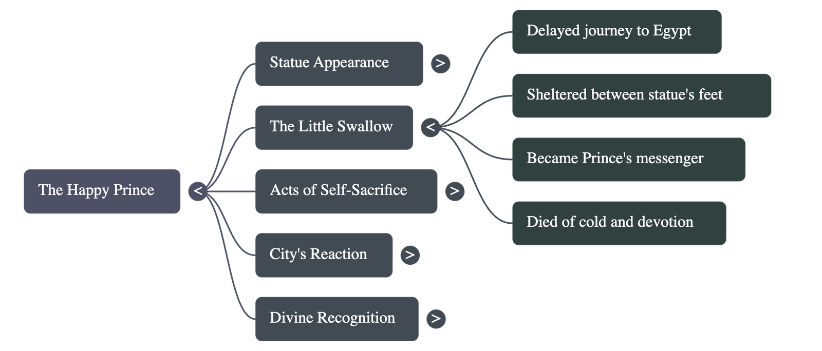- Witnessing Misery: The swallow flew over the city and reported back to the Prince. He saw the rich making merry while beggars sat at the gates, and starving children huddled together under bridges for warmth.