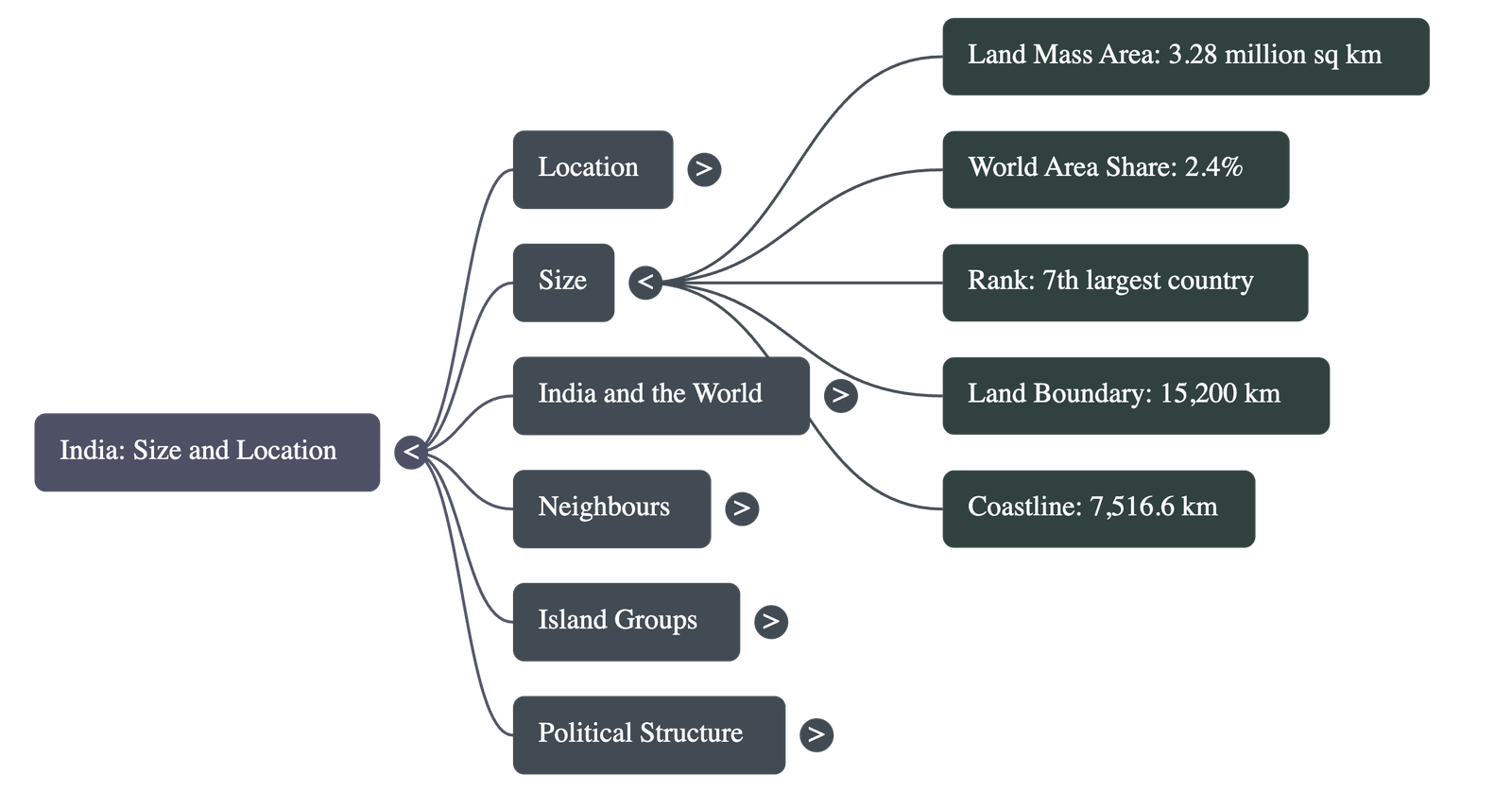 - Global Ranking: India is the seventh largest country in the world.