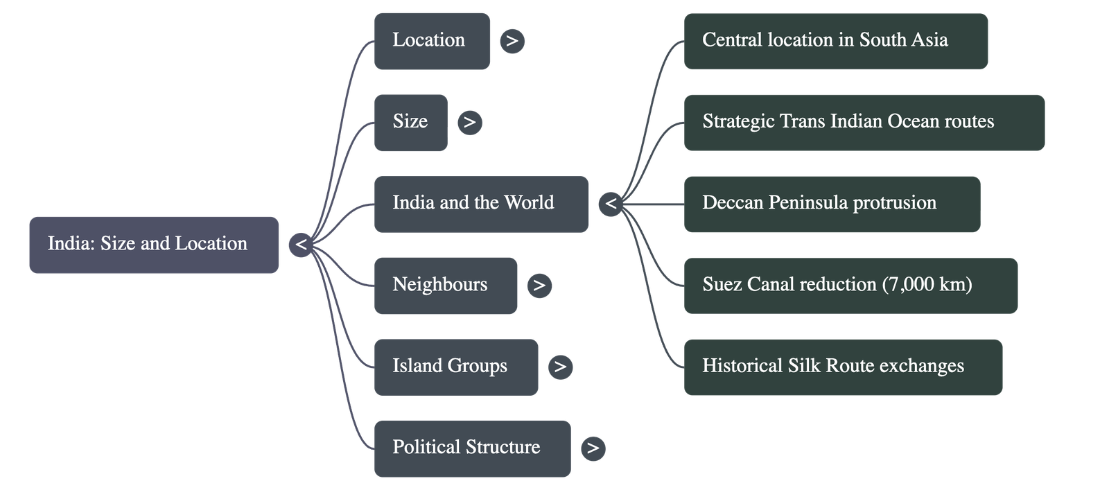 - Strategic Location: India has a central location between East and West Asia and is a southward extension of the Asian continent.