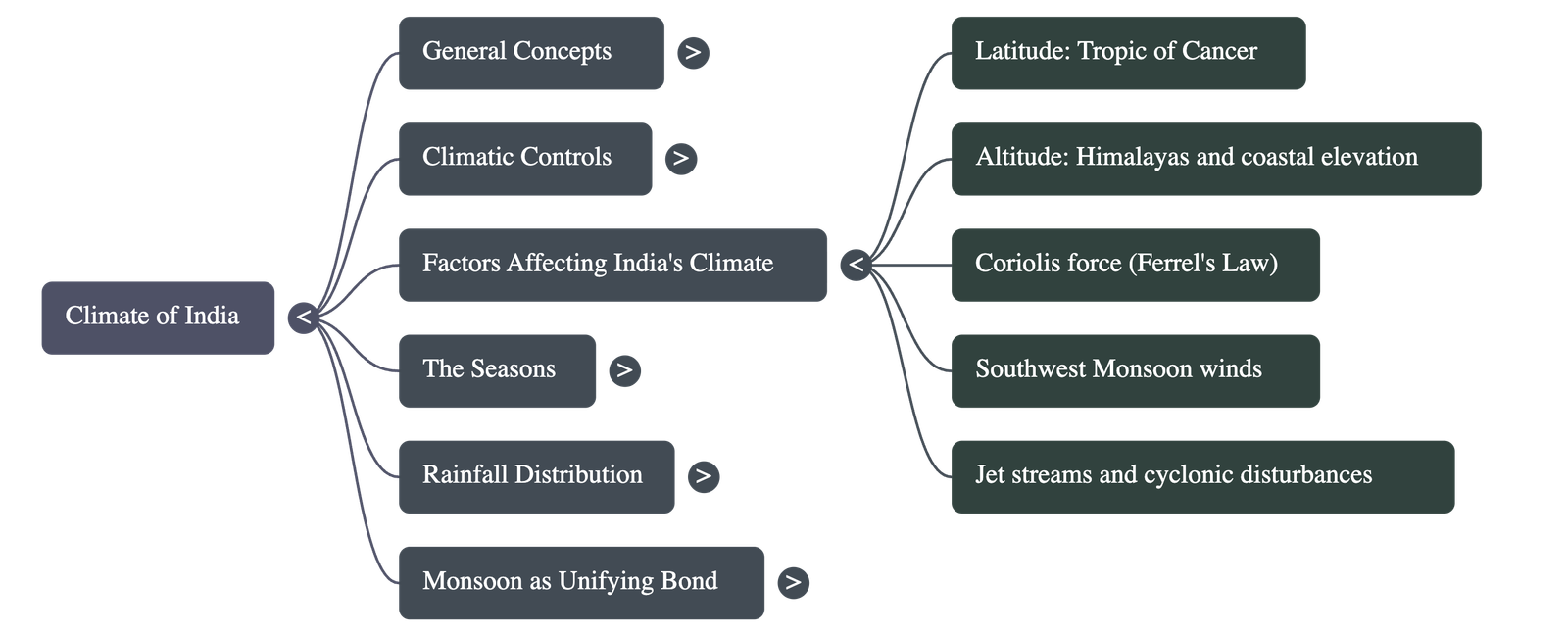 - Pressure and Winds: India is influenced by North Easterly winds, jet streams, and the Coriolis force (which deflects winds to the right in the northern hemisphere).
