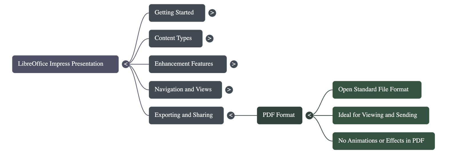- Exporting to PDF: To share the presentation easily, it can be exported as a Portable Document Format (PDF).