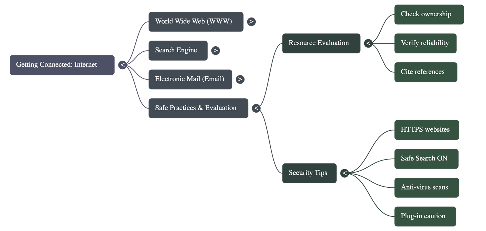 - Evaluation: Not all information on the web is accurate. Users must check the website’s ownership, reliability, purpose (commercial vs. educational), and cross-check facts with authentic sources.