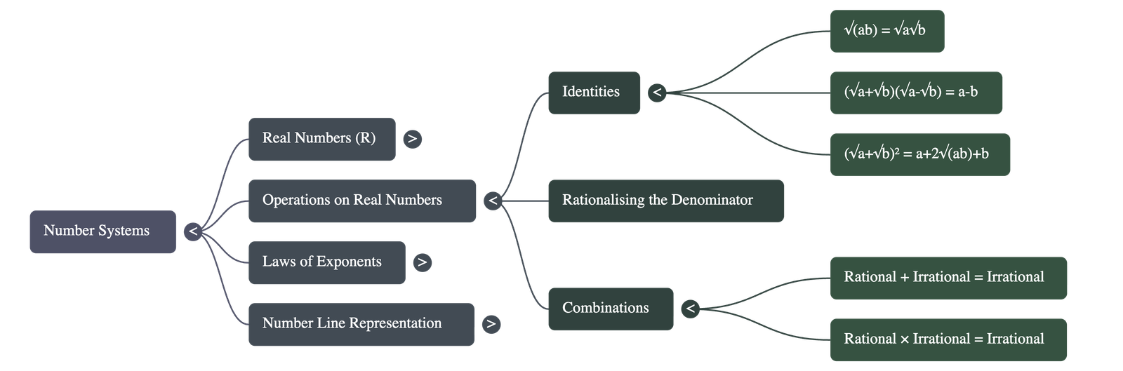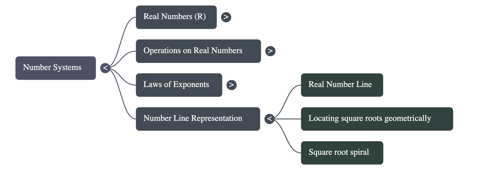 - Irrational numbers like √n (where n is a positive integer) can be located geometrically on the number line using the Pythagoras theorem.
