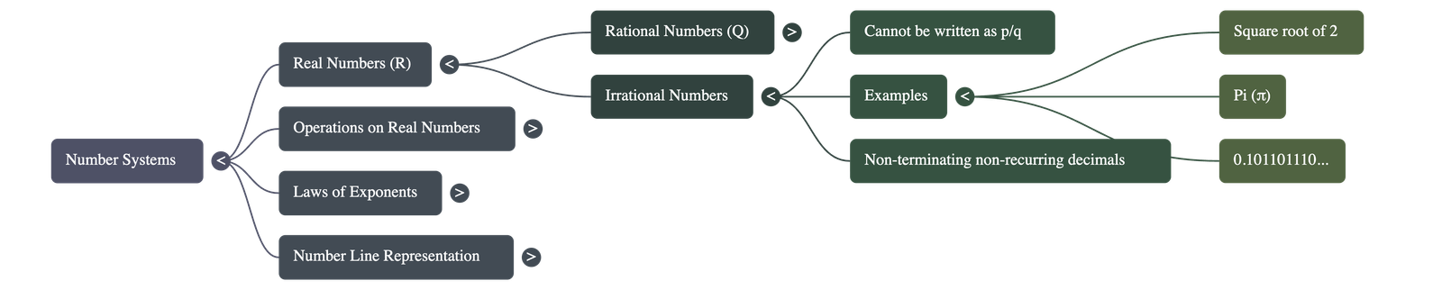 - Examples: √2, √3, √5, √15, π, and numbers like 0.101101110...
