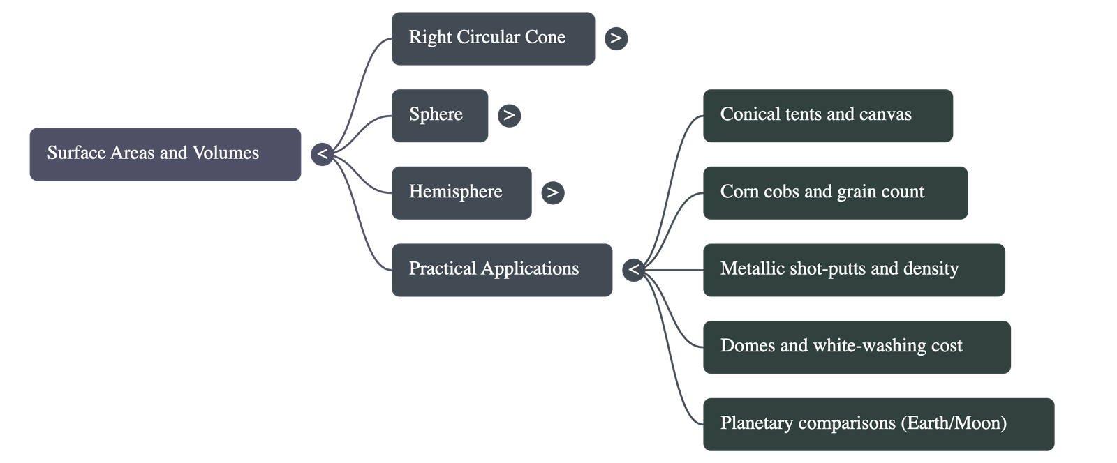 This chapter provides a detailed study of the surface areas and volumes of right circular cones and spheres (including hemispheres), building upon previous knowledge of cubes, cuboids, and cylinders.