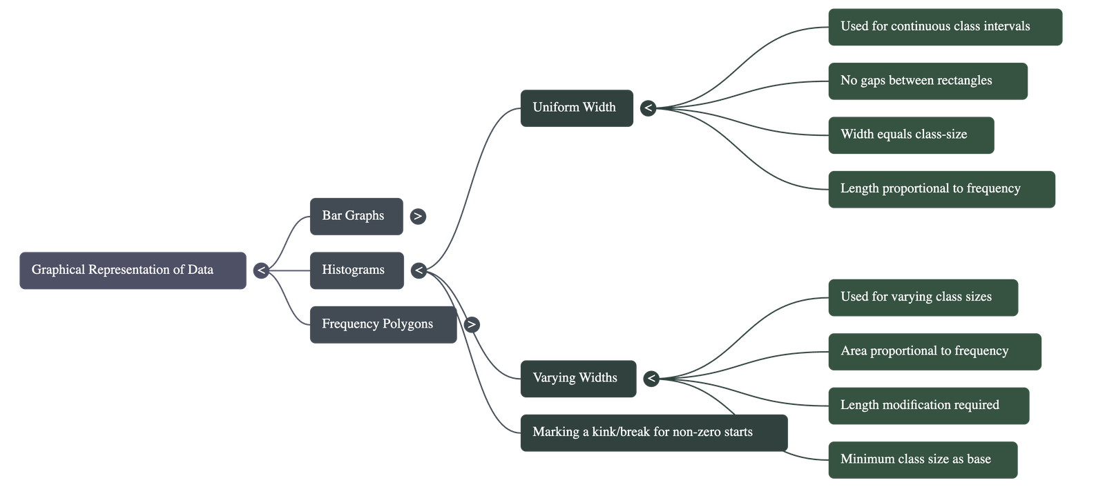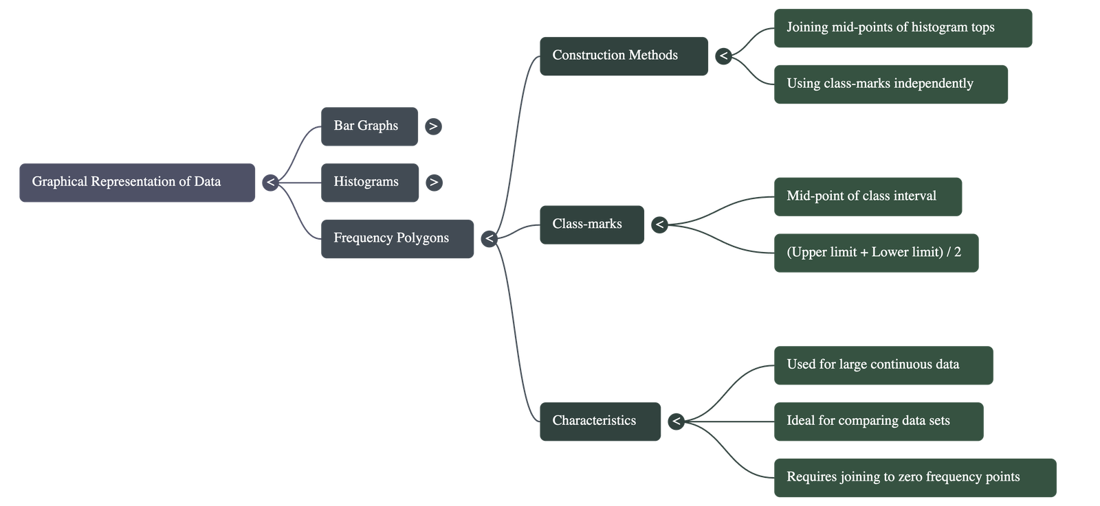 - • The chapter focuses on three primary methods: Bar Graphs, Histograms, and Frequency Polygons.