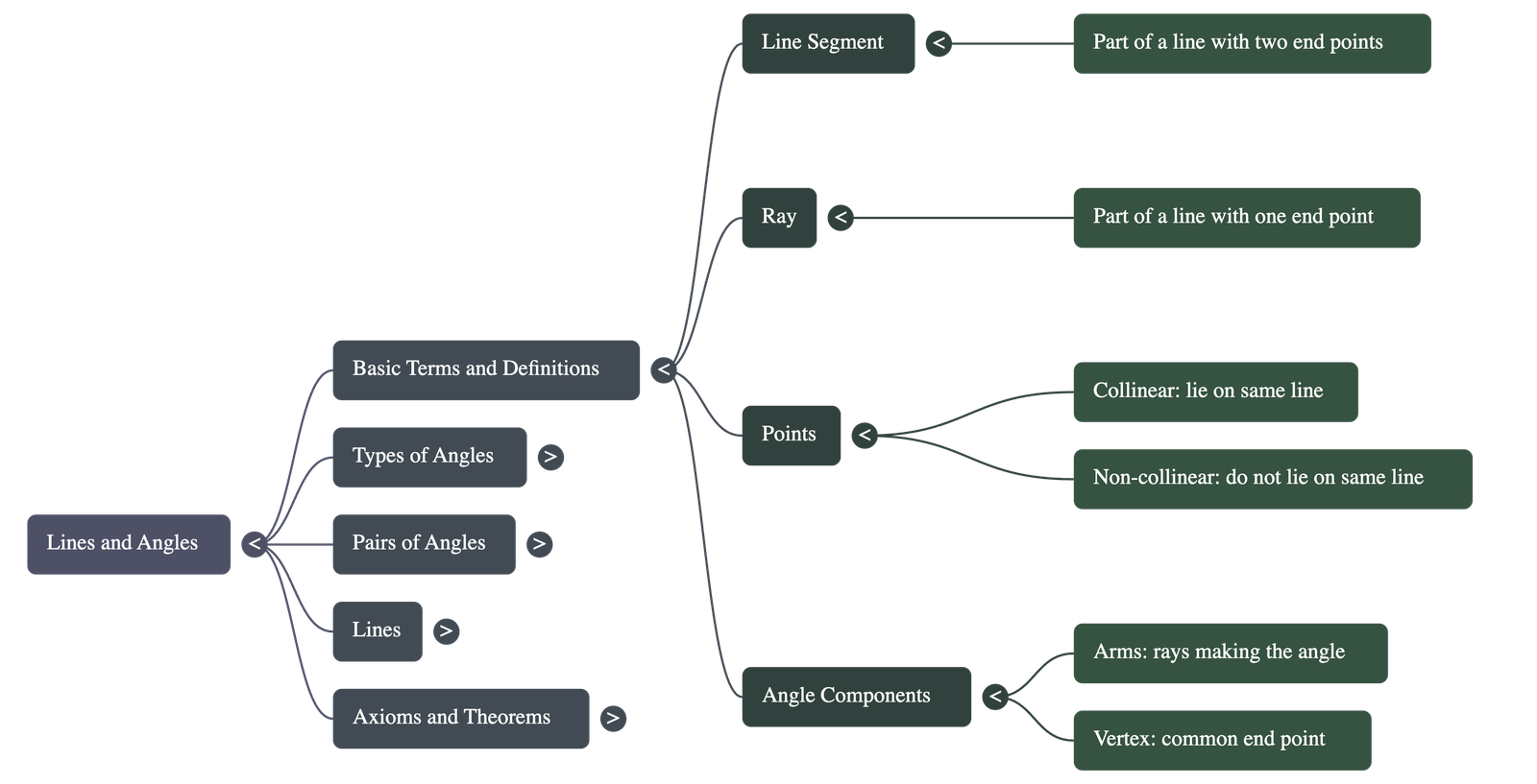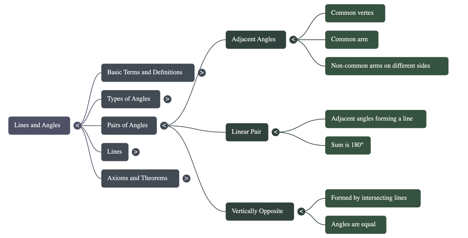- Linear Pair of Angles: Formed when the non-common arms of two adjacent angles form a straight line.