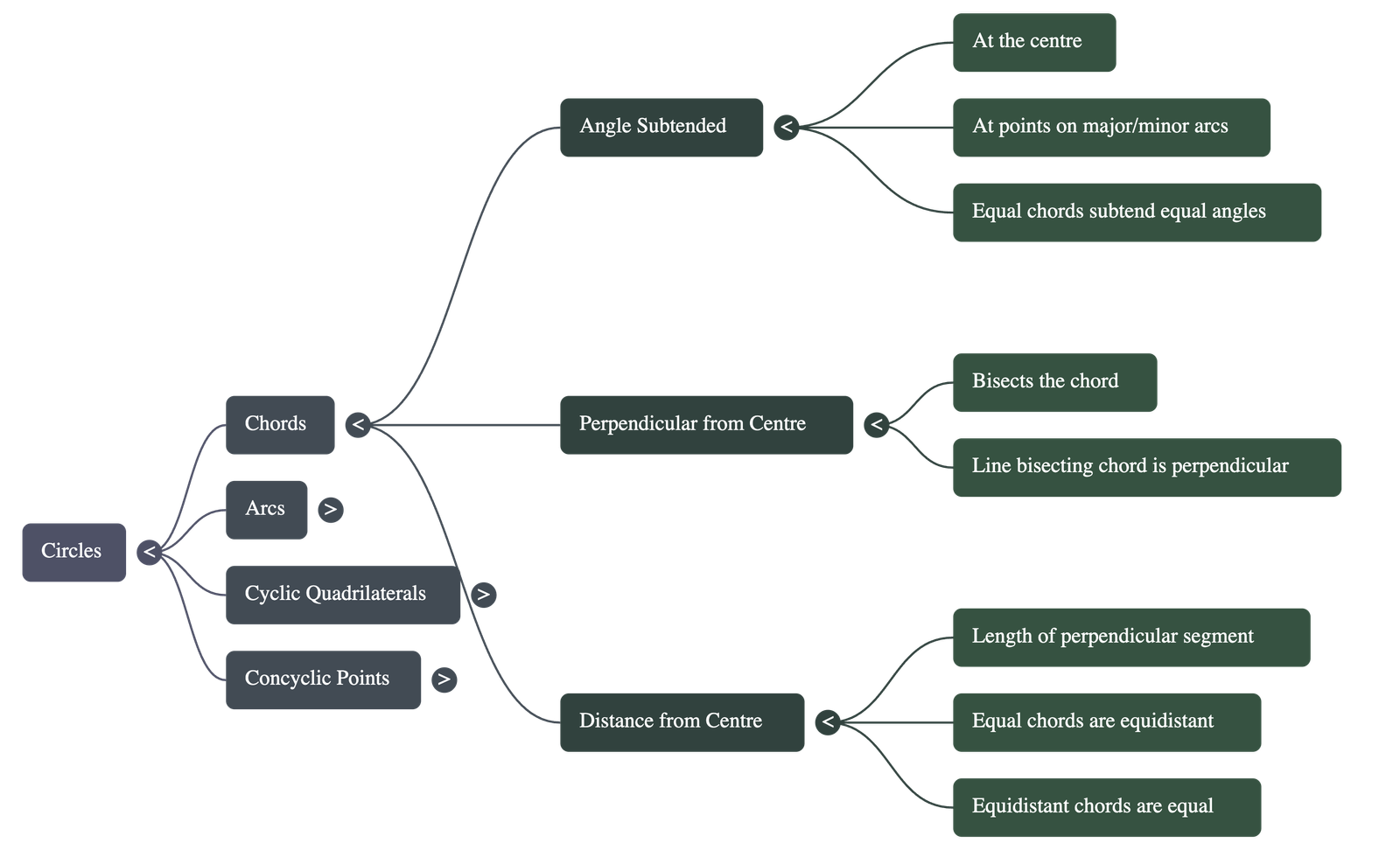 - Equidistance: Equal chords of a circle are at an equal distance (equidistant) from the centre.