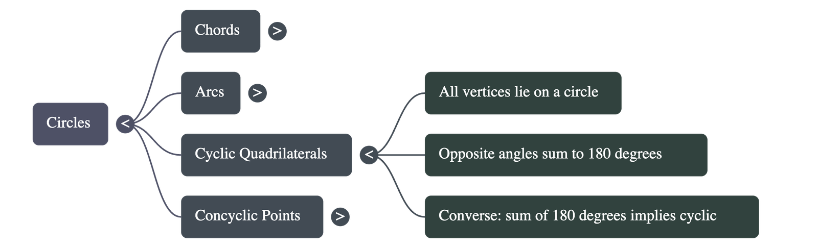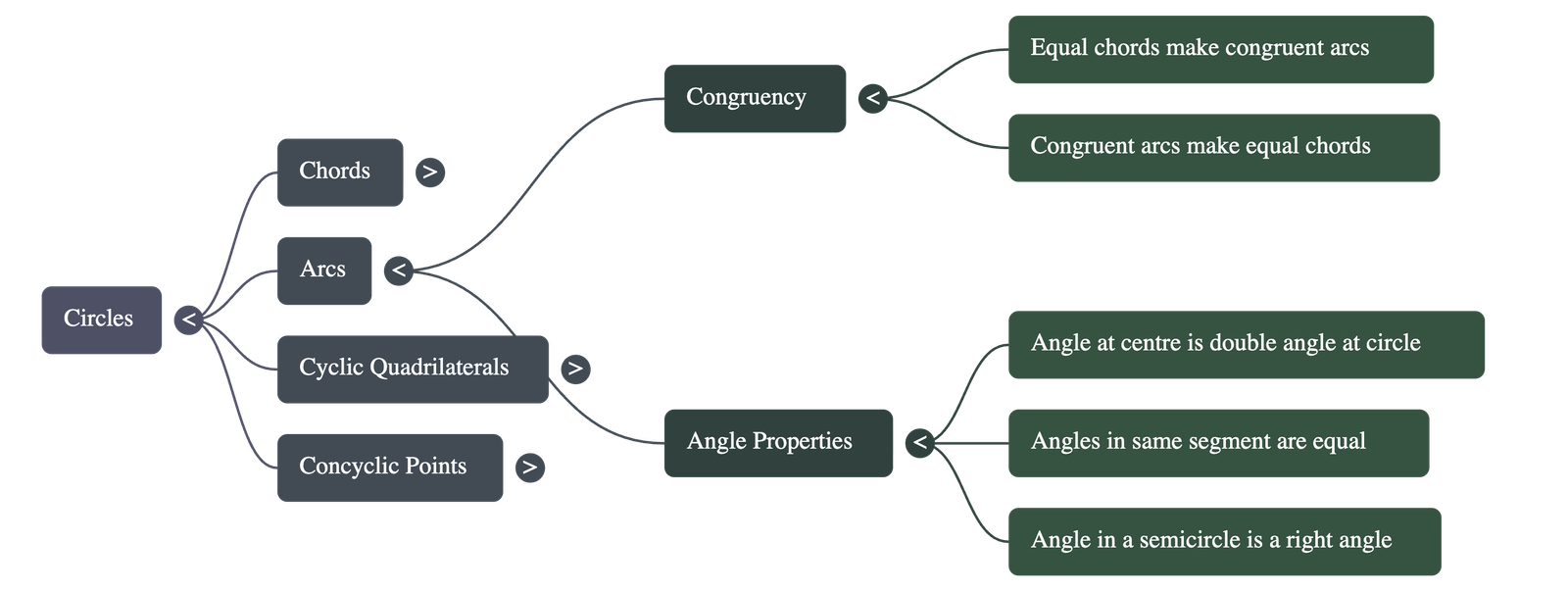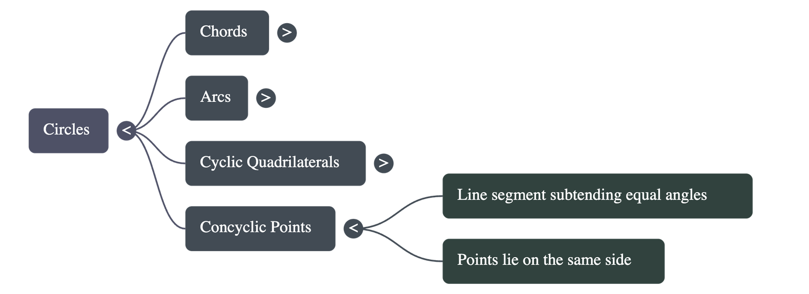 - Concyclic Points: If a line segment joining two points subtends equal angles at two other points on the same side of the line, then all four points lie on the same circle.