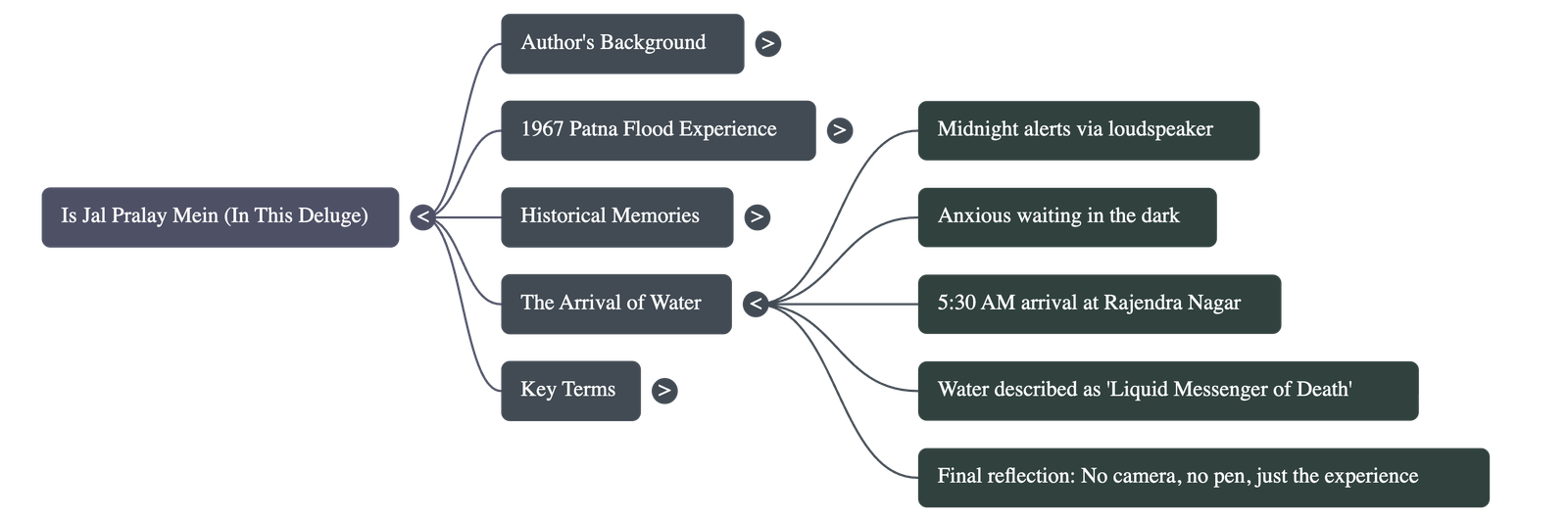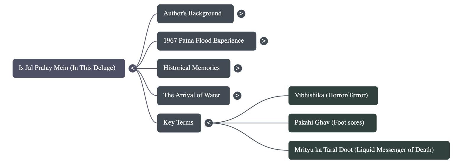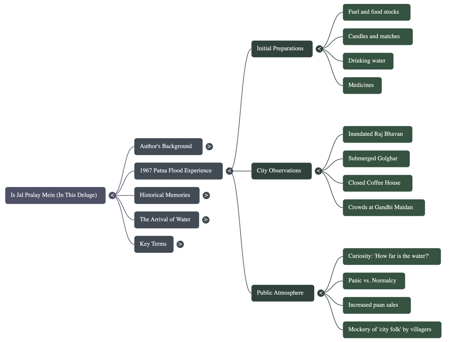 - लेखक ने बाढ़ पर कई लेख और रिपोर्ताज लिखे हैं, लेकिन बाढ़ में घिरने और उसे भोगने का प्रत्यक्ष अनुभव उन्हें पहली बार 1967 में पटना में हुआ।