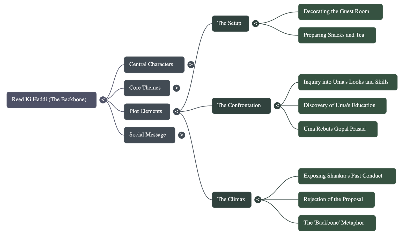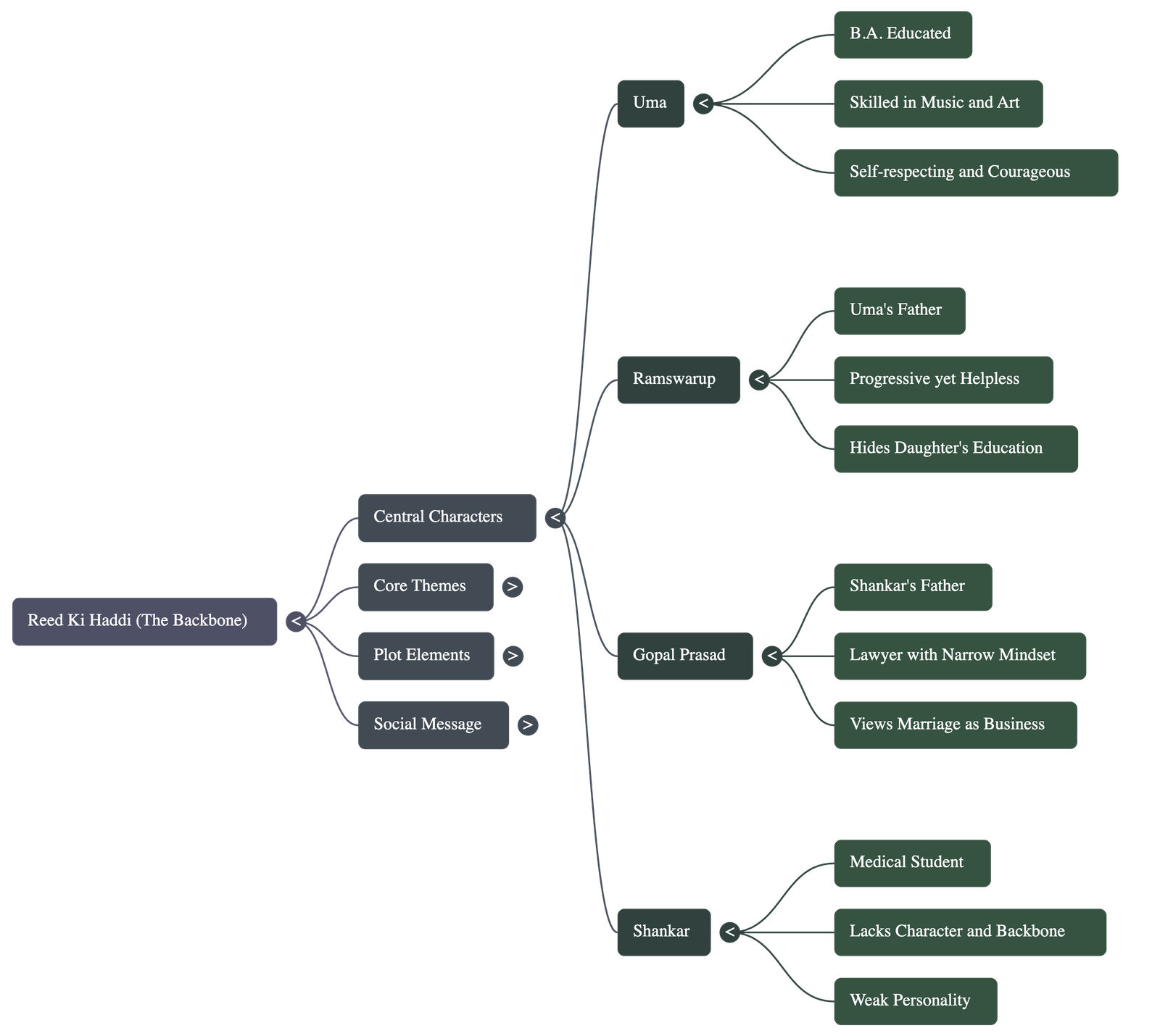 - जब गोपाल प्रसाद बार-बार उमा को बोलने के लिए मजबूर करते हैं, तो उमा दृढ़ता से जवाब देती है। वह पूछती है कि क्या लड़कियों का दिल नहीं होता? क्या वे मेज-कुर्सी की तरह बिकाऊ माल हैं?