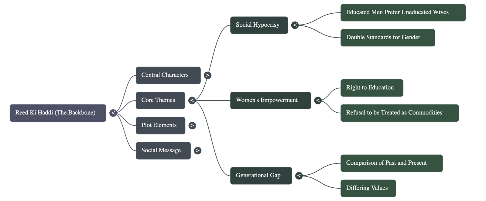 - वे कहते हैं कि "मोर के पंख होते हैं, मोरनी के नहीं; शेर के बाल होते हैं, शेरनी के नहीं," जिसका अर्थ है कि पढ़ना और काबिल होना सिर्फ मर्दों का काम है।