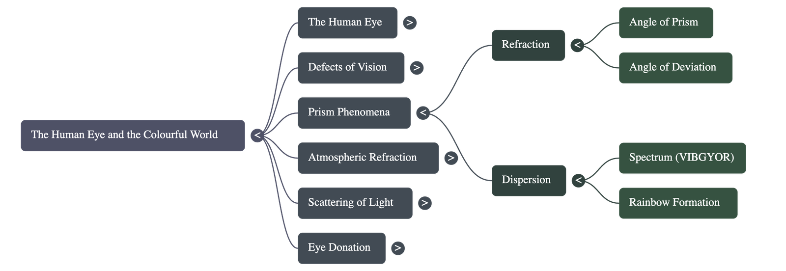 - Cause: Different colors of light bend through different angles with respect to the incident ray. Red bends the least, and violet bends the most.