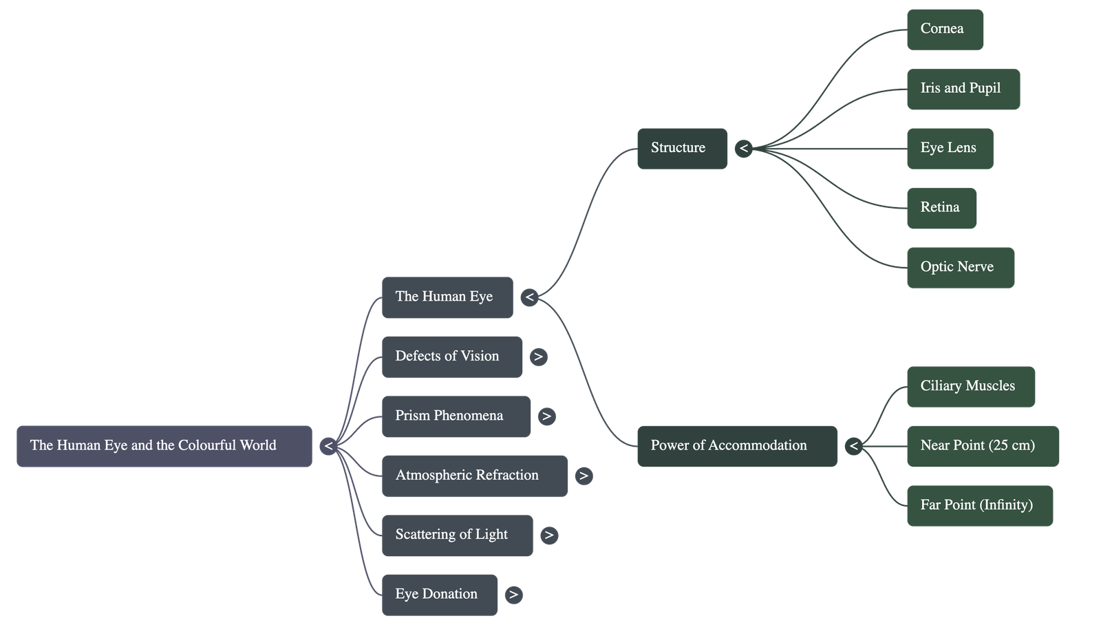 - Power of Accommodation: The ability of the eye lens to adjust its focal length is called accommodation.