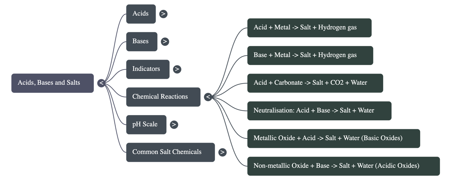 - Non-metallic Oxides + Base → Salt + Water: Non-metallic oxides are acidic in nature (e.g., Carbon dioxide reacting with Calcium hydroxide).