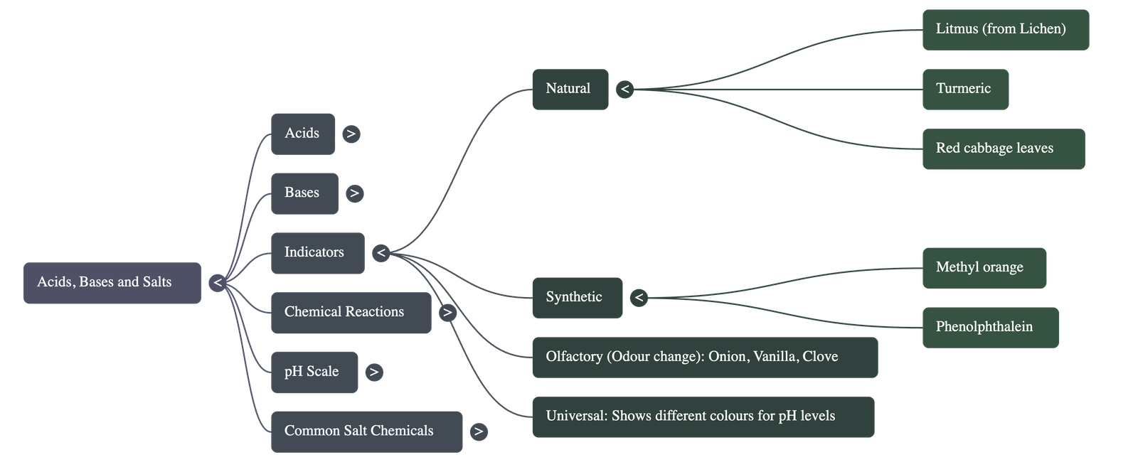 - Synthetic Indicators: Methyl orange and phenolphthalein.