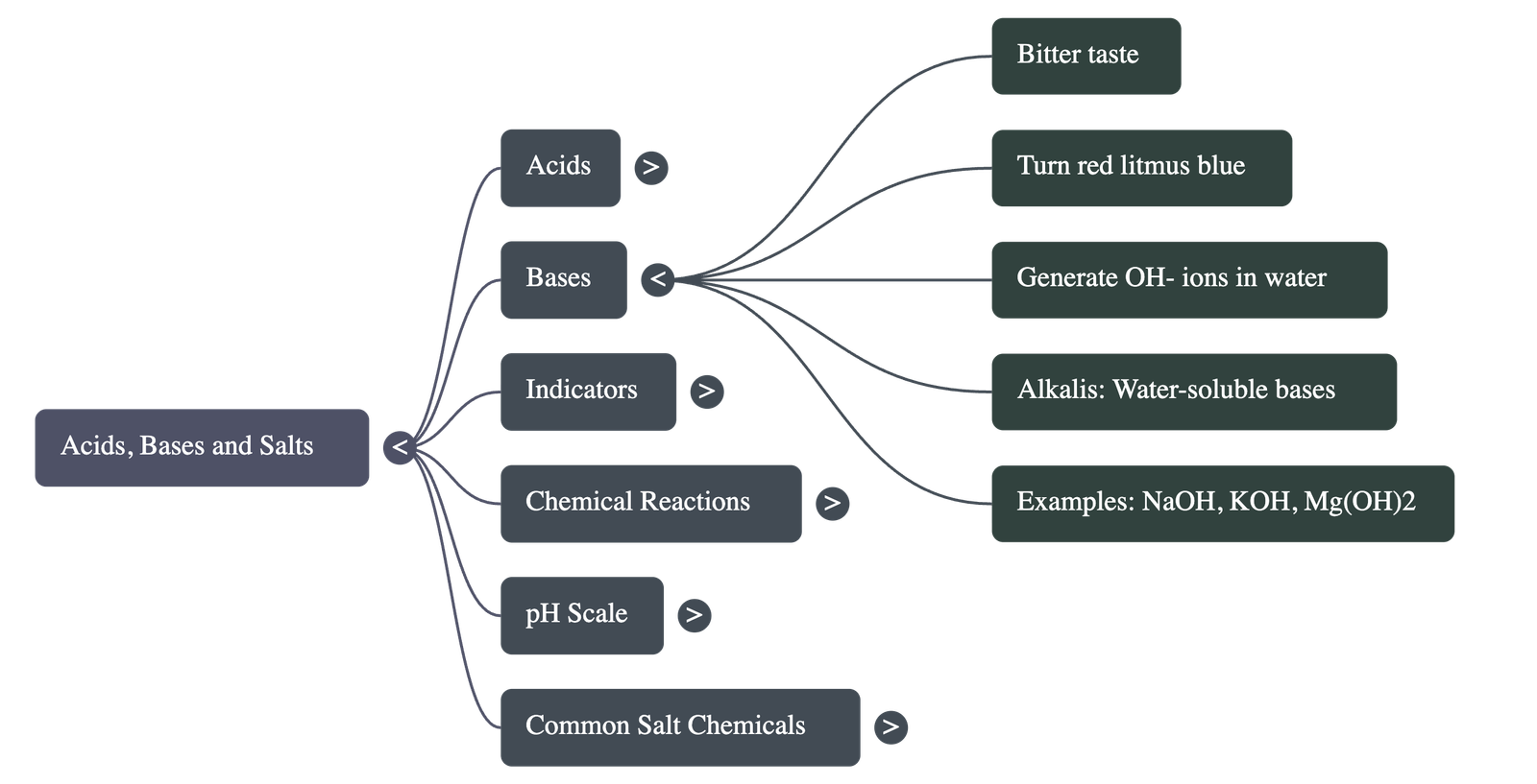 - Bases: Substances that taste bitter and turn red litmus paper blue.