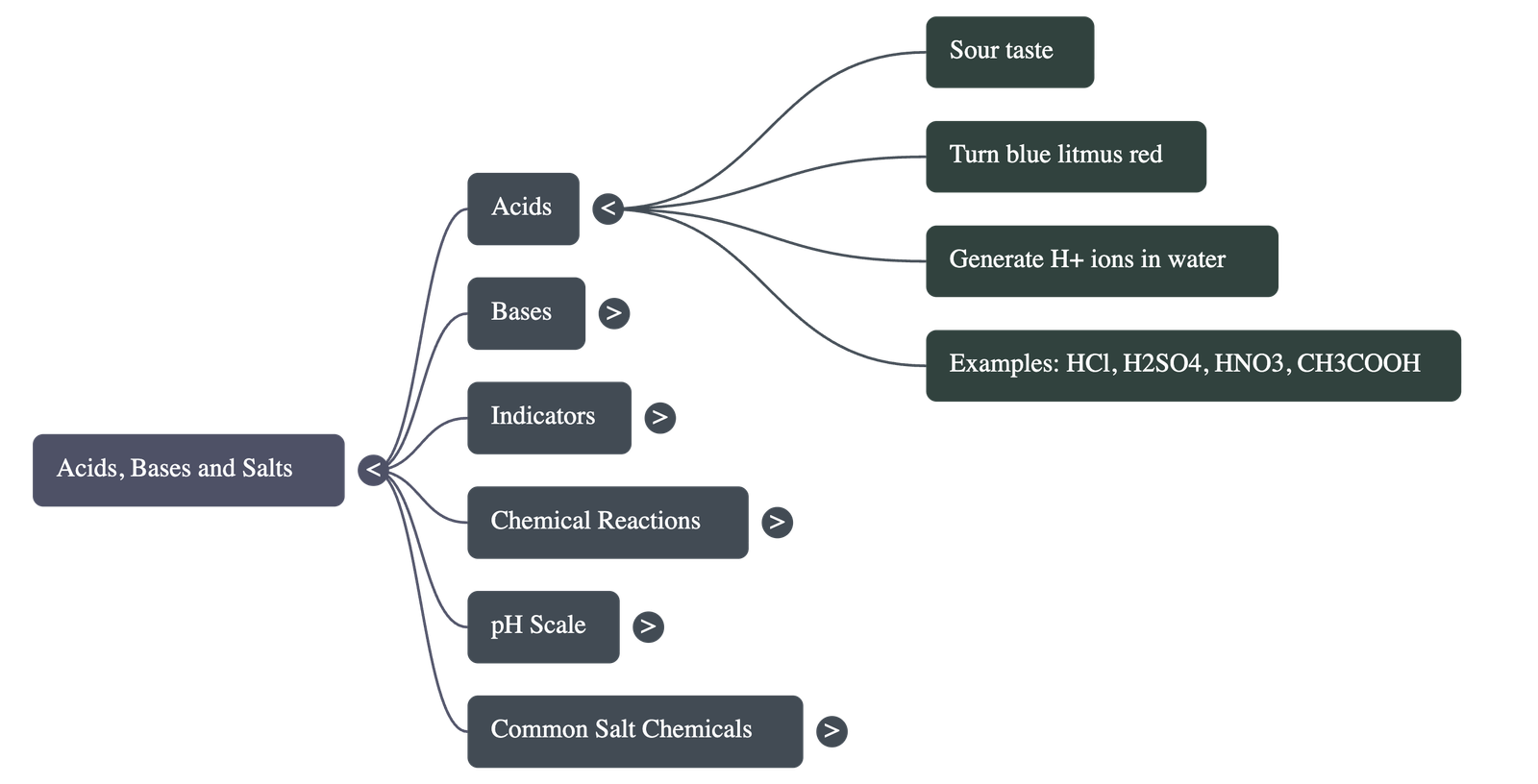 - Acids: Substances that taste sour and turn blue litmus paper red.