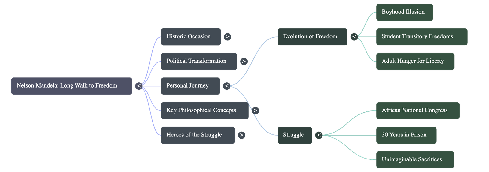 - True Freedom: Later, he realized that not only was he not free, but his brothers and sisters were not free either. He saw that freedom is indivisible; the chains on one were chains on all. This realization drove him to join the African National Congress and fight for the freedom of his people.