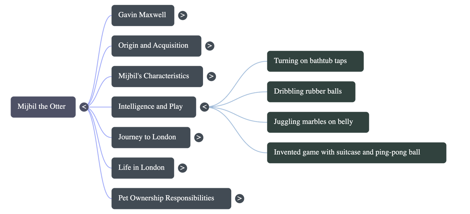 - Games: Mijbil played with toys like ping-pong balls, marbles, and a terrapin shell. He invented a game using a damaged suitcase, running to catch a ball as it rolled down the sloped lid.