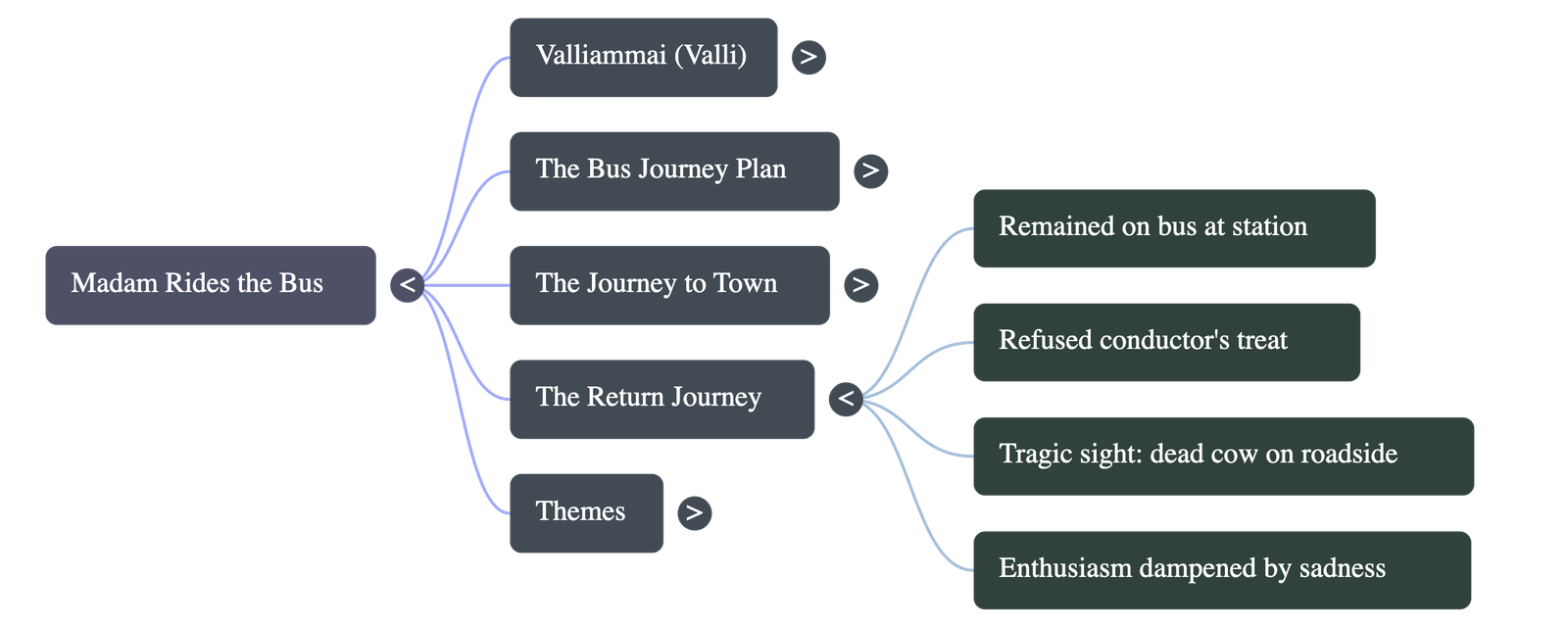 - • When the bus stops, Valli refuses to get off. She pays another thirty paise for the return trip.