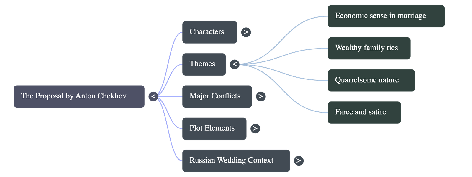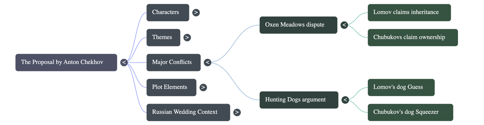 - The Spark: Lomov attempts to transition to his proposal by mentioning the friendly relationship between their families. He casually refers to "my Oxen Meadows," which touch Natalya's birchwoods.