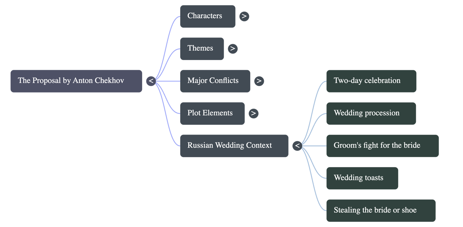 - Curtain: The play ends with the couple arguing loudly while Chubukov shouts for champagne to drown out the noise, relieved to have the burden of marrying off his daughter lifted.
