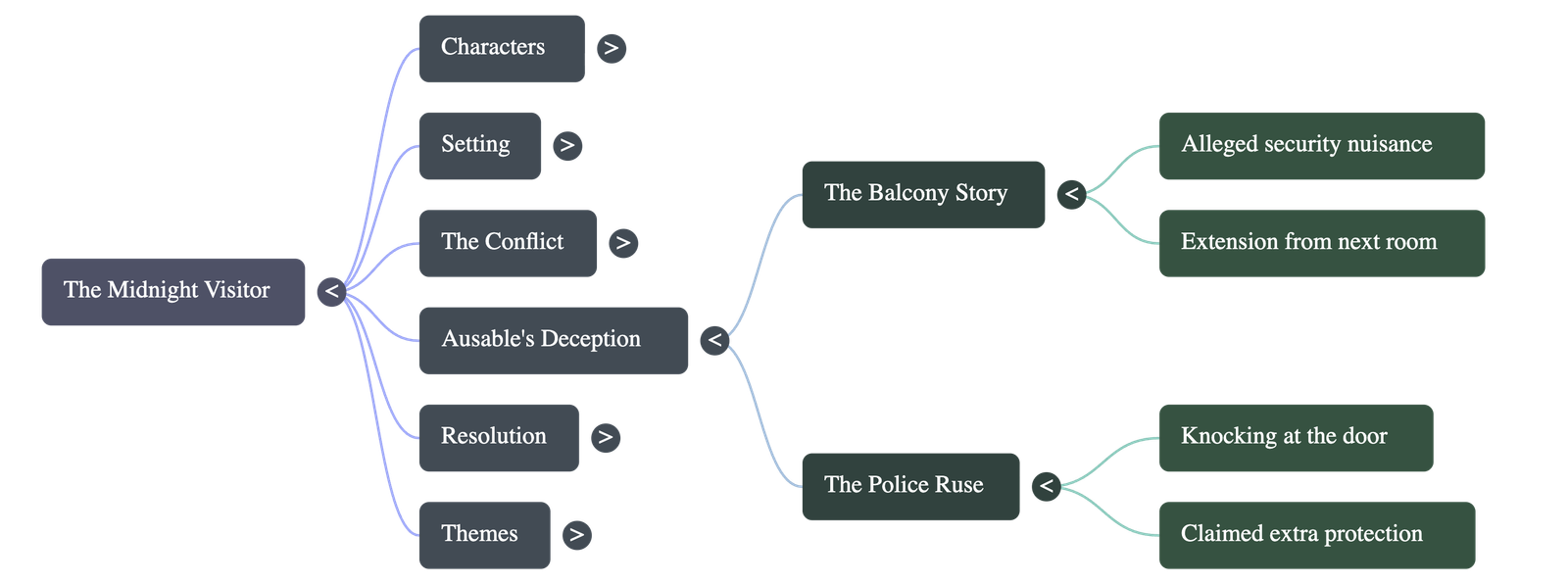 - The Balcony Deception: Ausable immediately displays incredible presence of mind by feigning irritation and complaining about a "balcony" outside his window, claiming it is the second time someone has used it to break into his room.